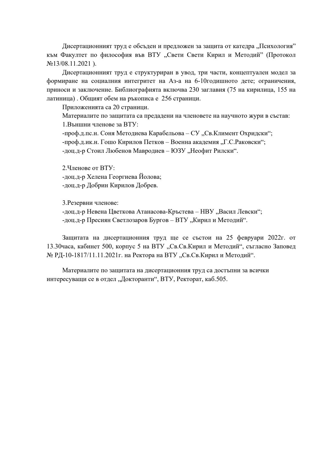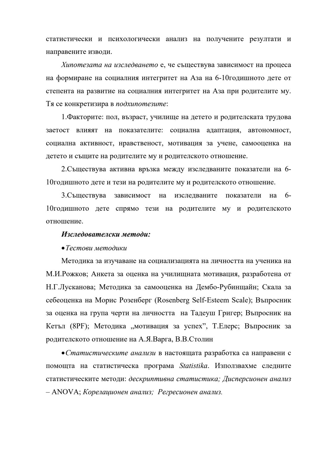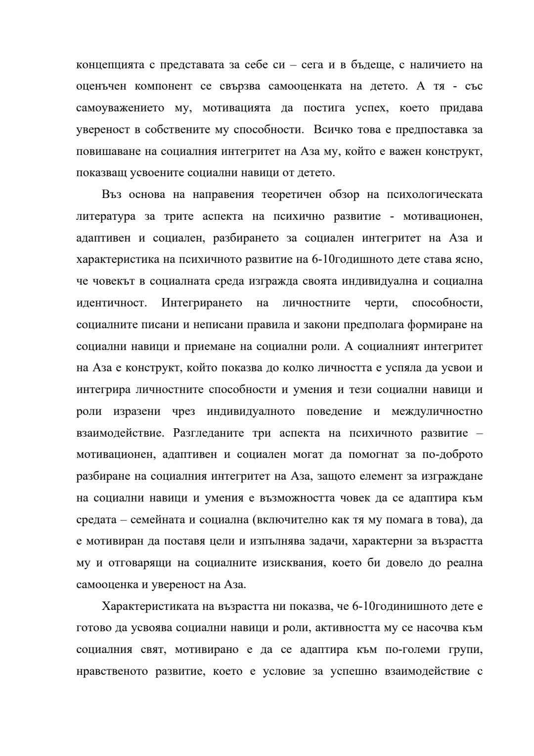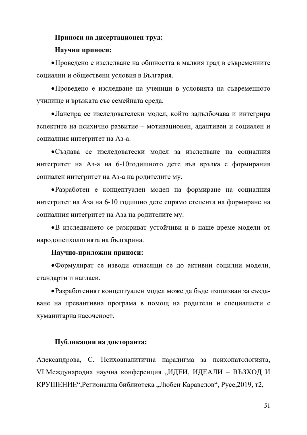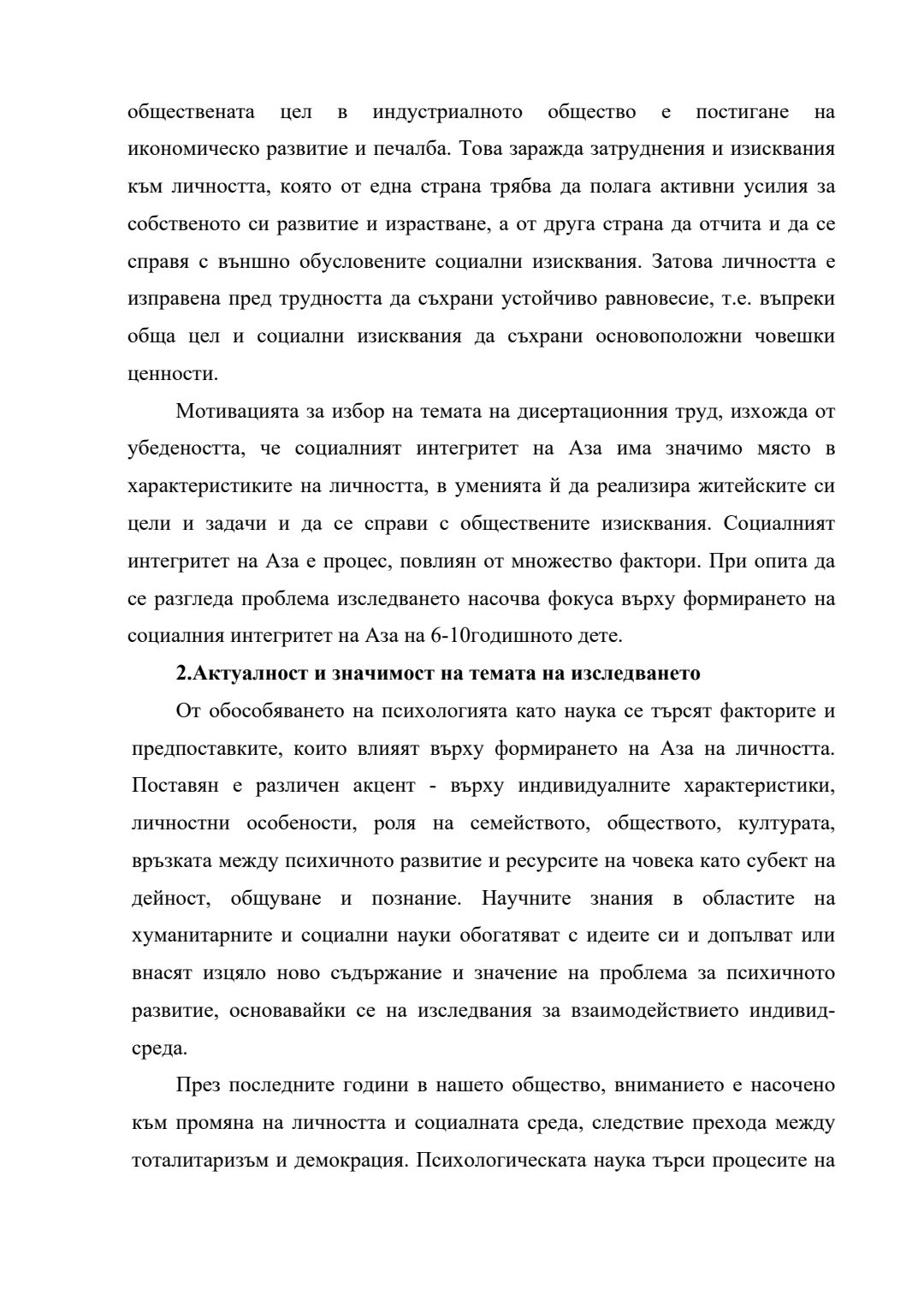 Аспекти на психическо развитие и социален интегритет на Аз-а : Автореферат / Стефка Илиева Александрова ; Науч. ръководител Хелена Йолова