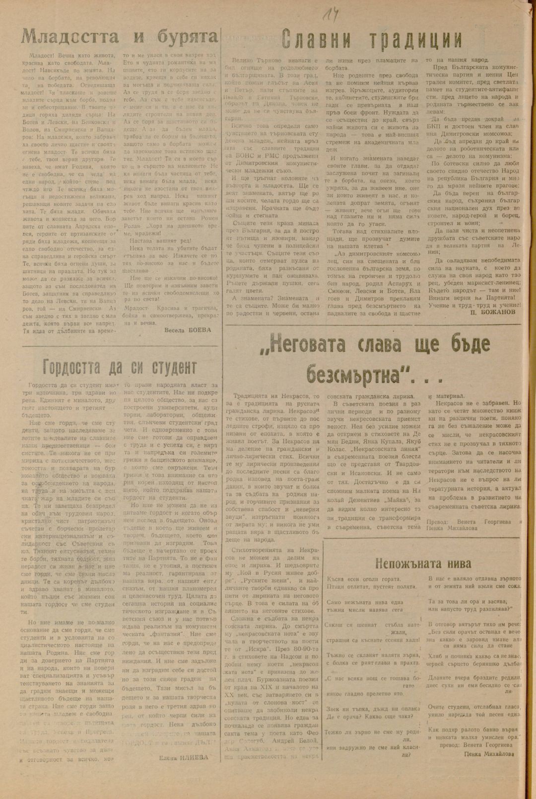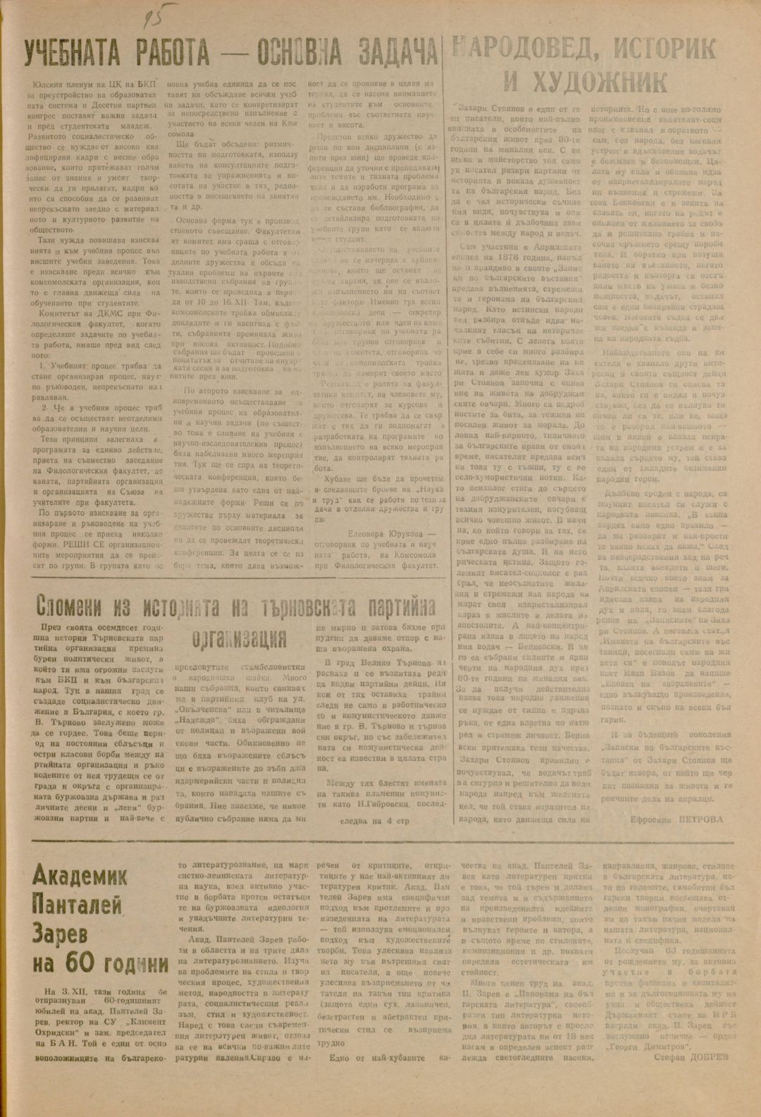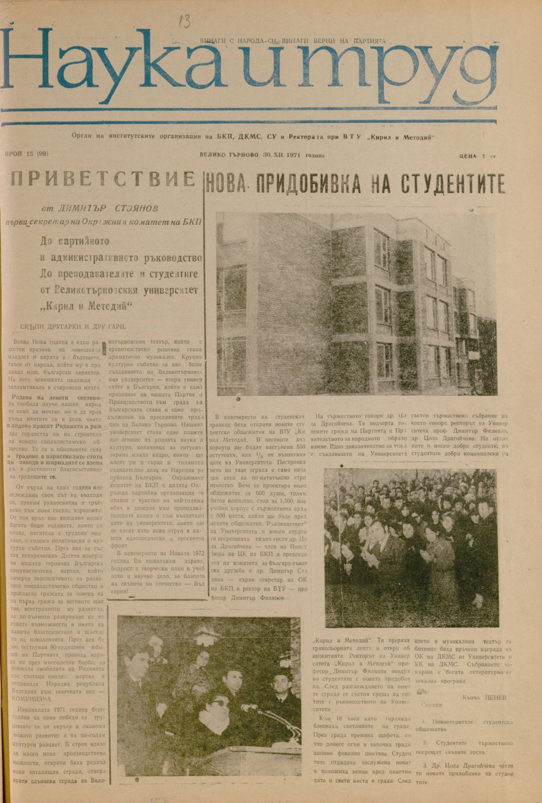 Год.10,15 (99). Наука и труд : Орган на институтските комитети на БКП, ДКМС, СУ и Ректората при ВПИ "Братя Кирил и Методий"