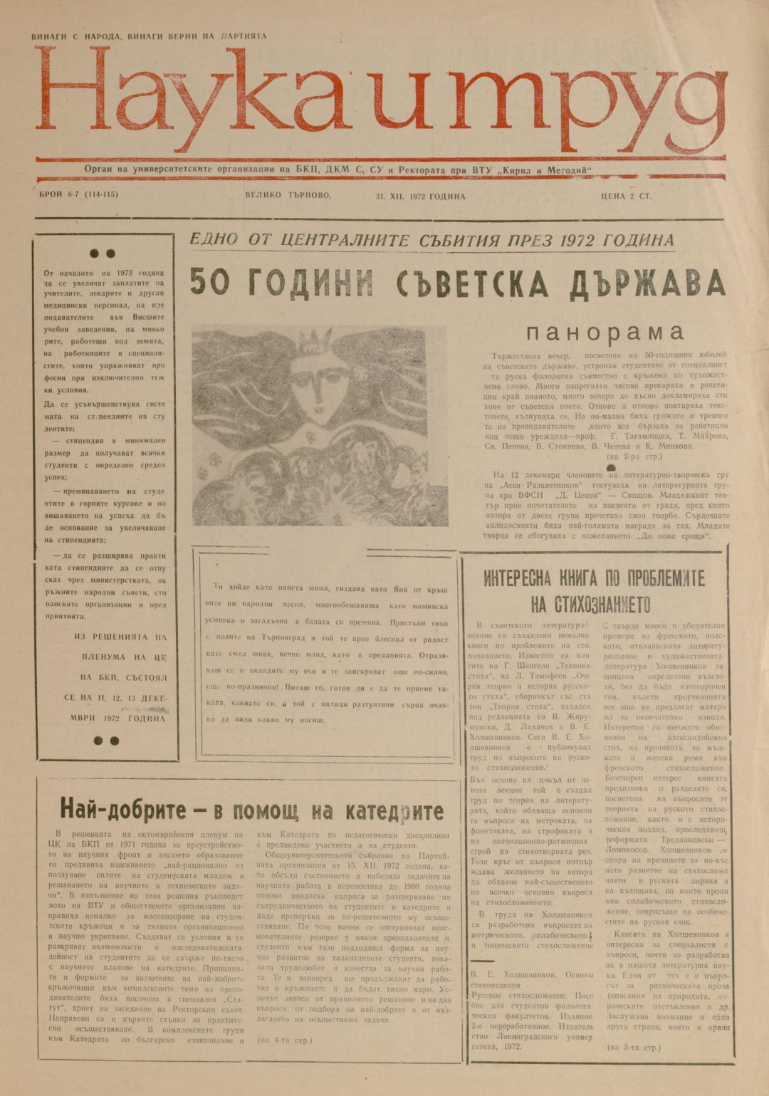 Год.11, 6-7 (114-115). Наука и труд : Орган на институтските комитети на БКП, ДКМС, СУ и Ректората при ВПИ "Братя Кирил и Методий"