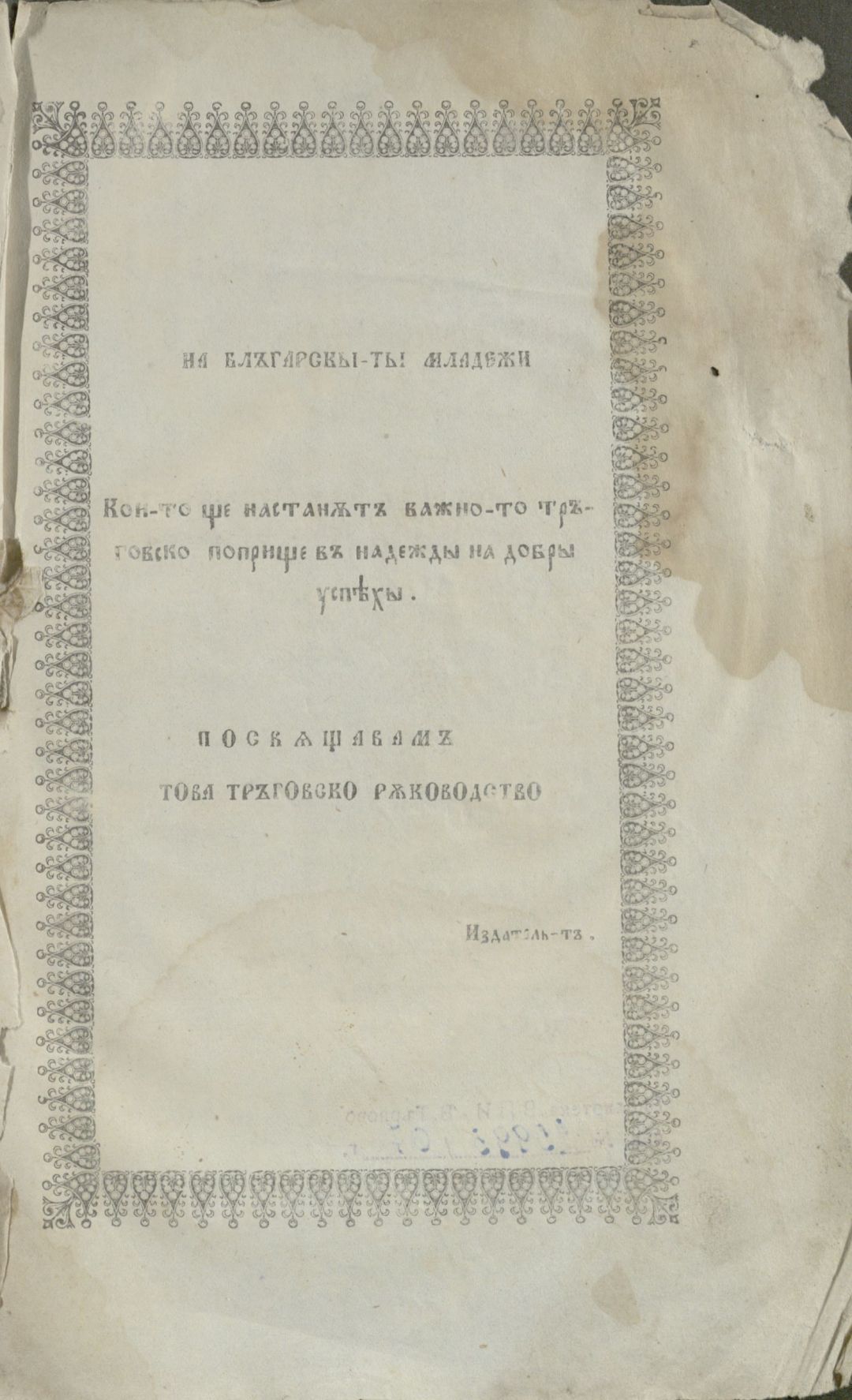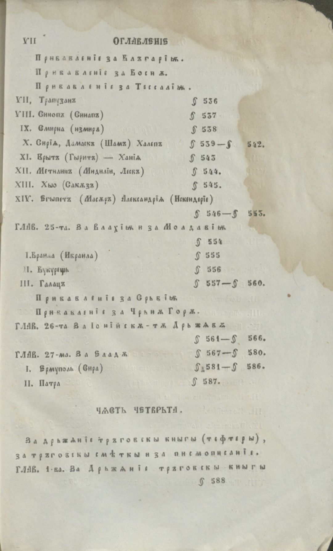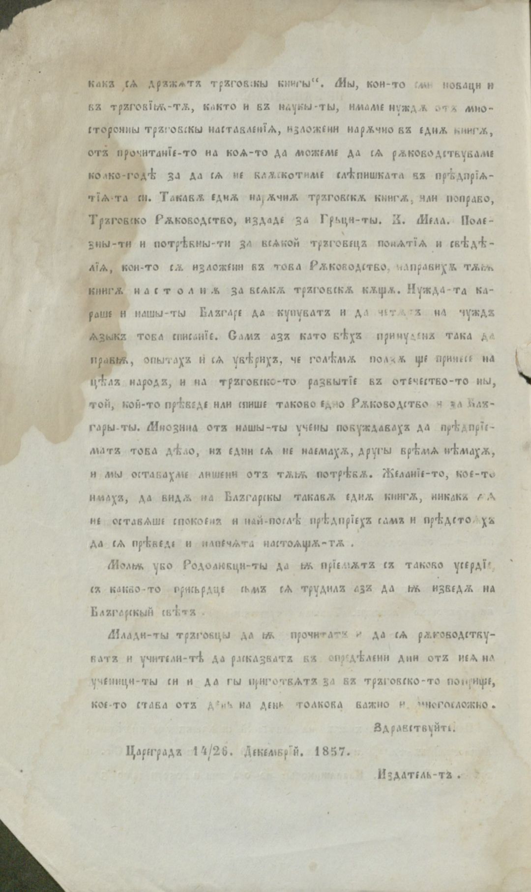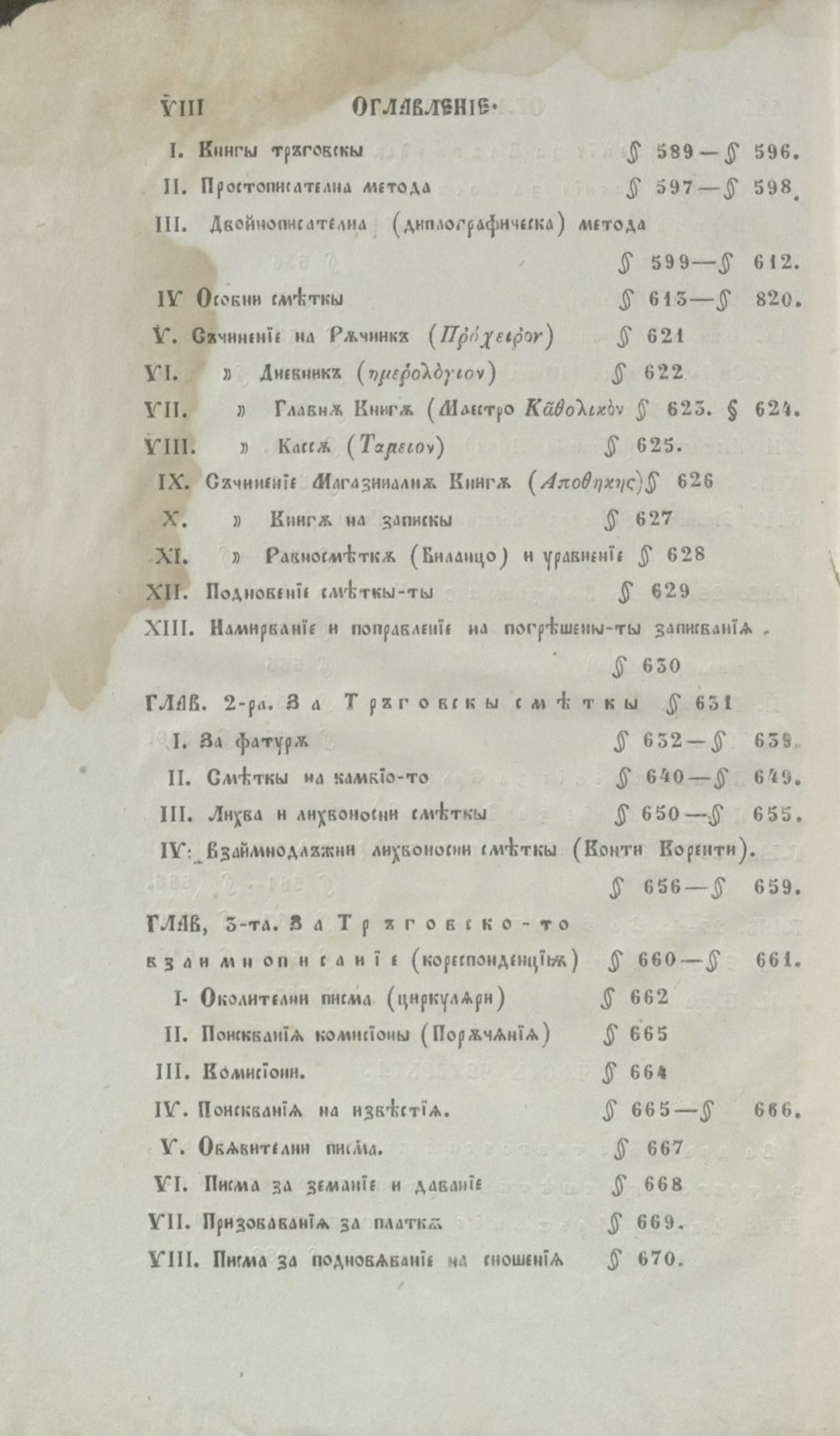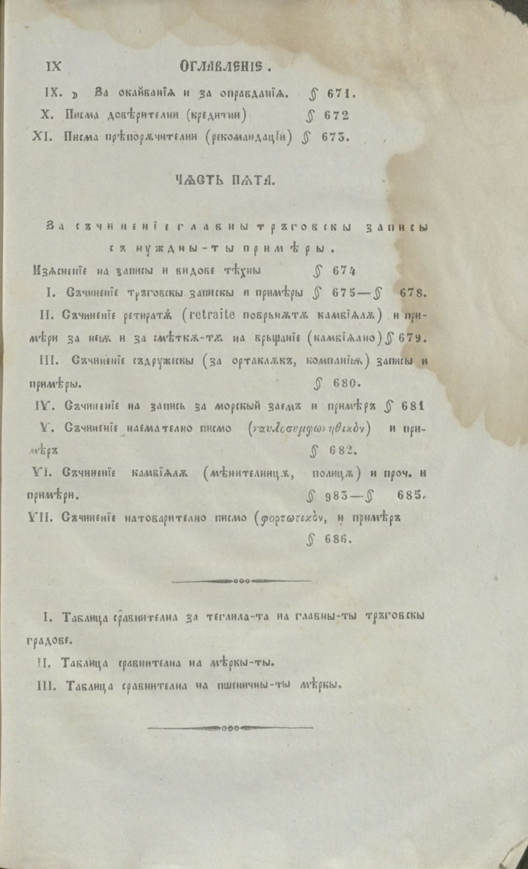 Мелас, К. Тръговско ръководство за тръгуване, промишленост, мореплаване и за тръговски делания : Собствено пак за веществото на търговията;за състоянието на тръговията, на земледелието и на промишлеността в европ. дръжави; за монетити, камбиялити, теглилкити и меркити по тръговскити градове; за дръжание на тръг. книги, за тръг.сметки и.......... / К. Мелас ; прев.[от гр. ез.] и отпеч. с иждивението на Хр. Л. Хамамджиев ; Превод с няколко прибавления А. П. Гранитский . - Цариград : Печатница Тадеа Дивитчиянова, 1858 . - [6], IX, 749, [25] c., 4 л. табл. ; 23 см