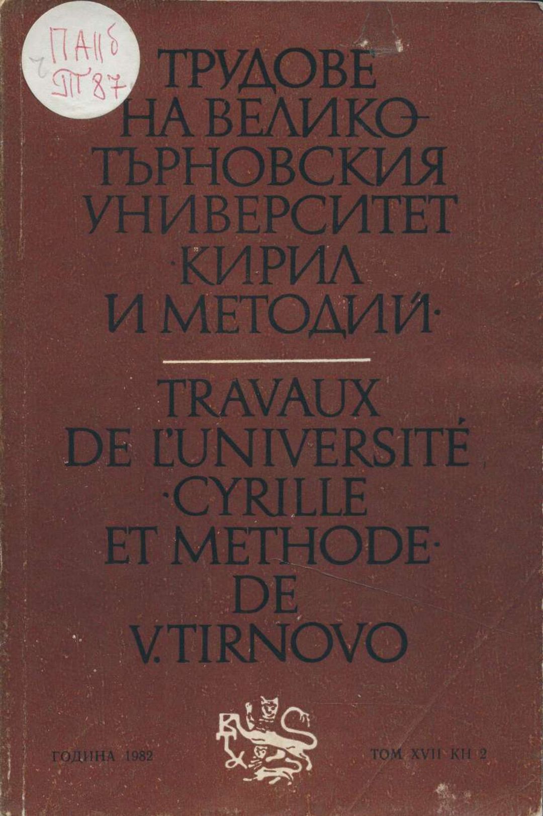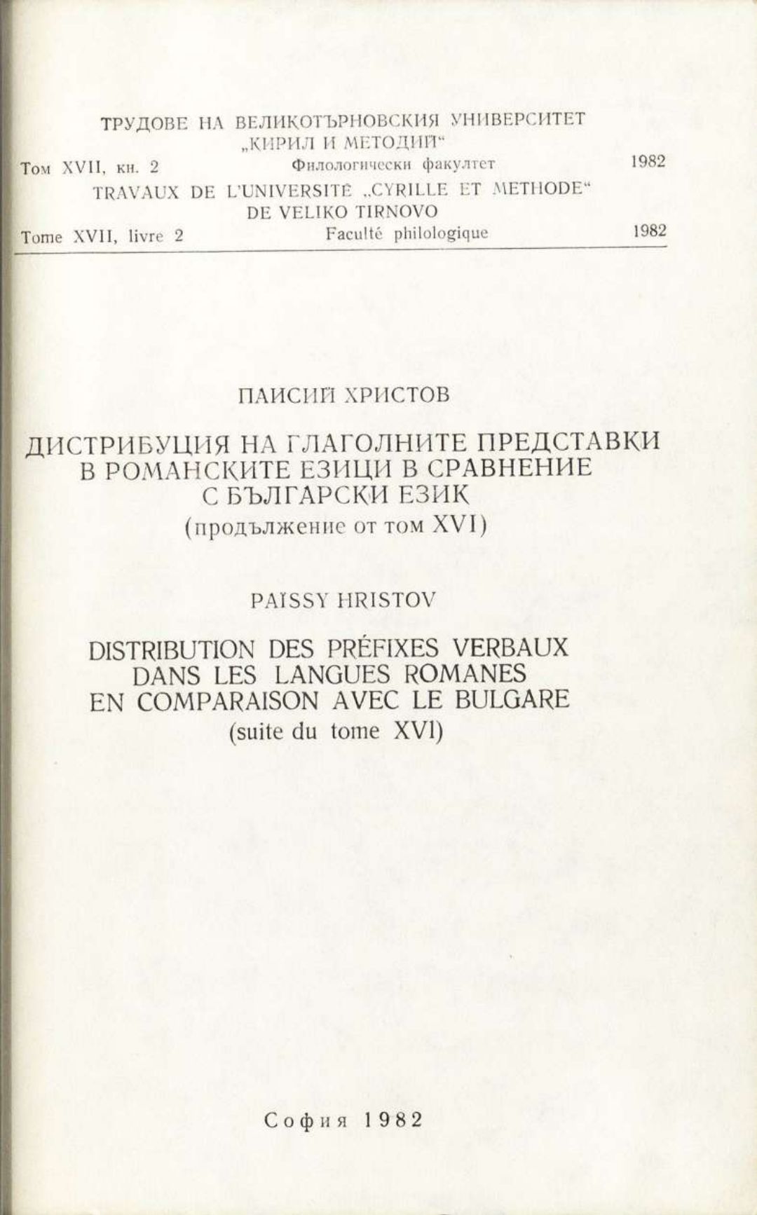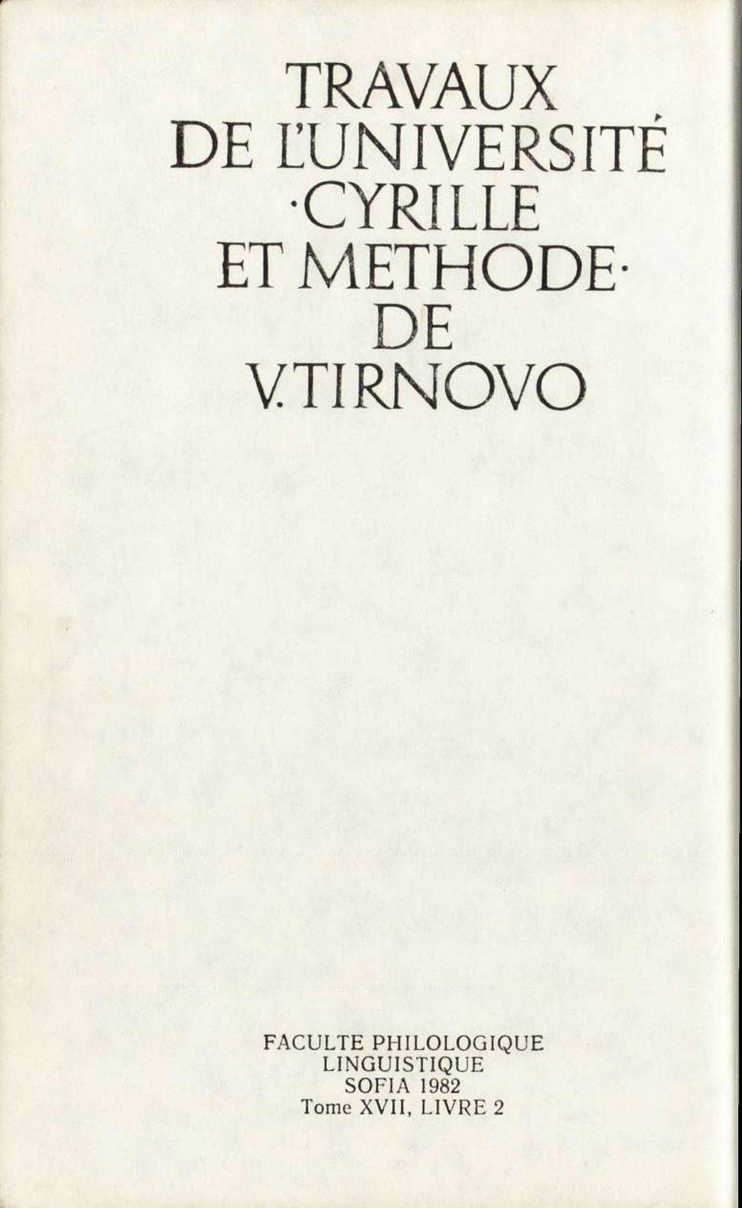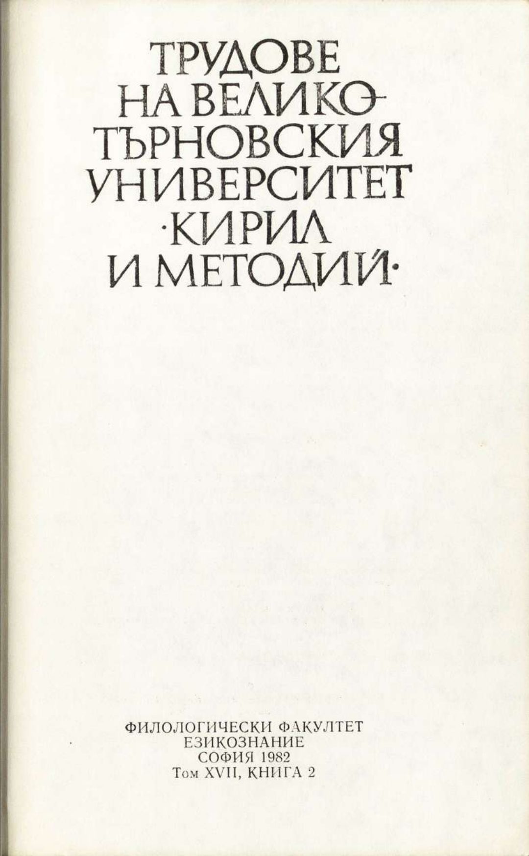 Том 17. Кн.2. Трудове на Великотърновския университет "Св. св. Кирил и Методий". Филологически факултет = Travaux de L'universite St. St. Cyrille et Methode de Veliko Tirnovo. Faculte de philologue Езикознание