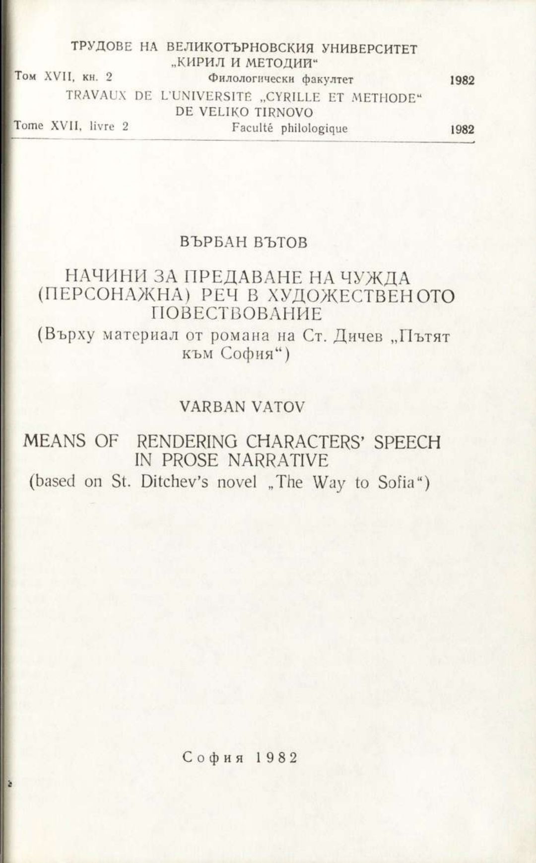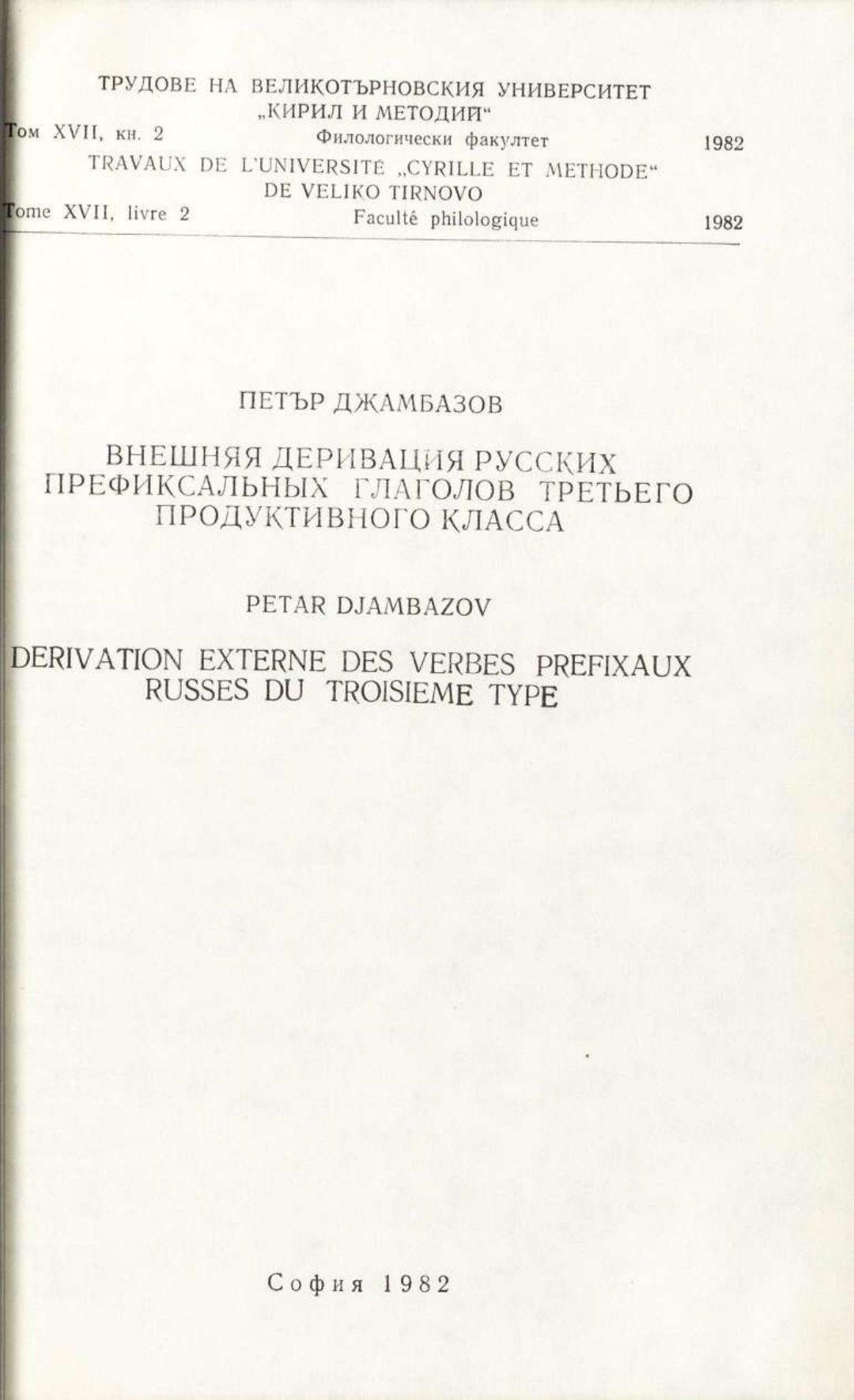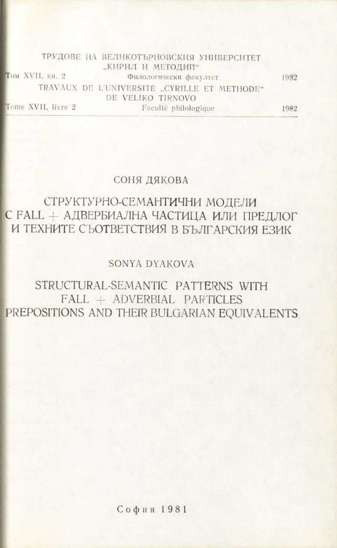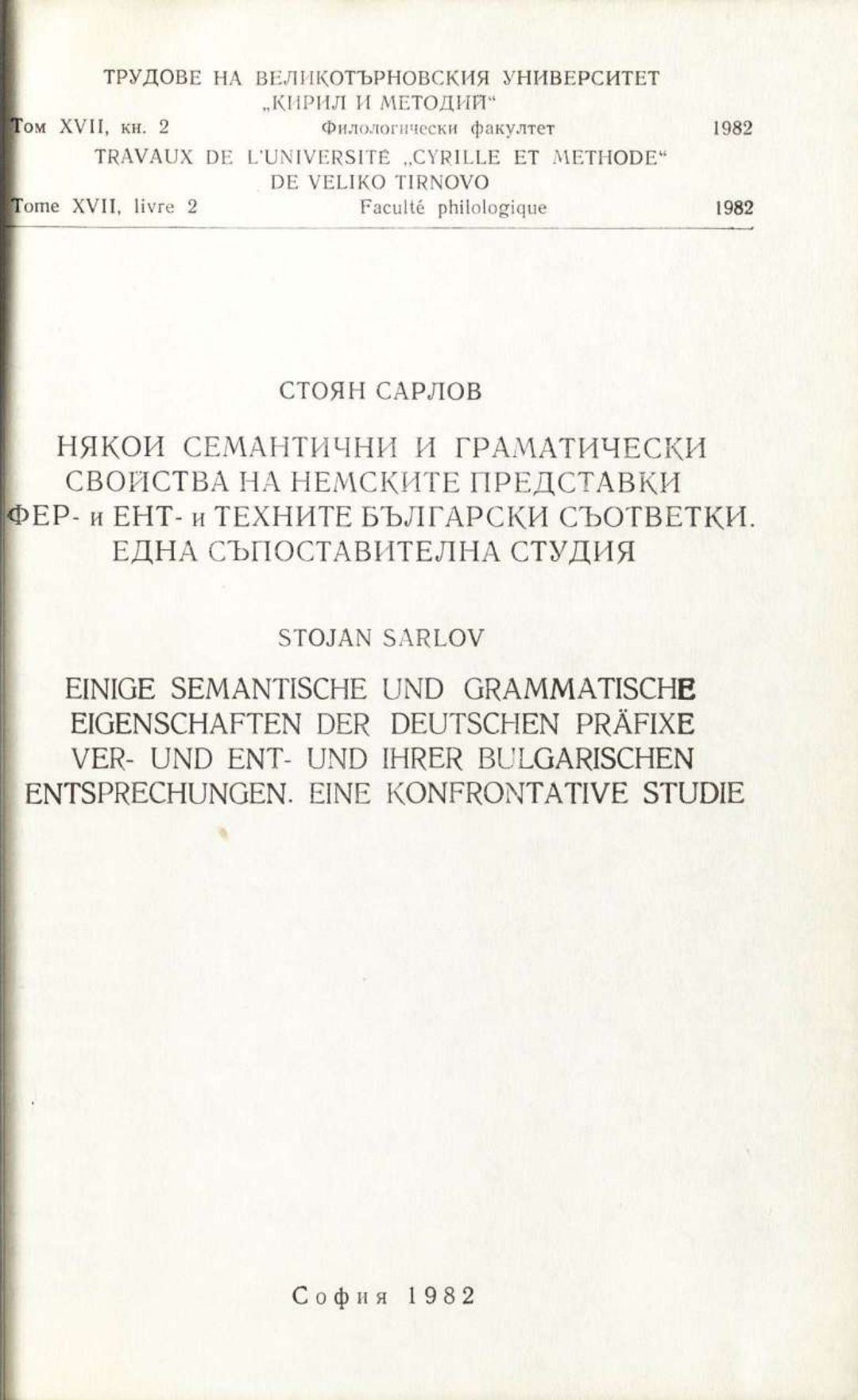 Том 17. Кн.2. Трудове на Великотърновския университет "Св. св. Кирил и Методий". Филологически факултет = Travaux de L'universite St. St. Cyrille et Methode de Veliko Tirnovo. Faculte de philologue Езикознание