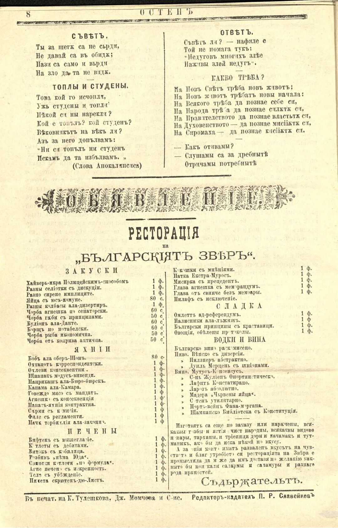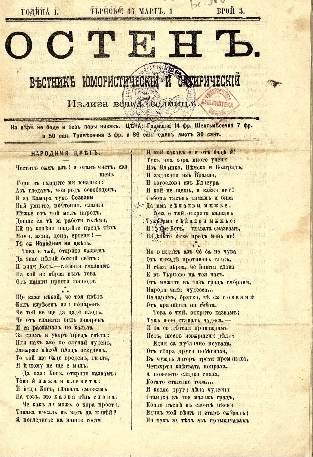 Год. 1, бр. 3. Остен : Вестник юмористический и сатирический вестник