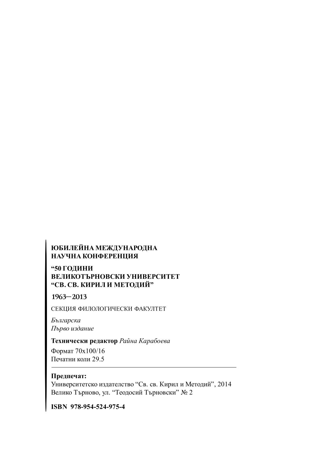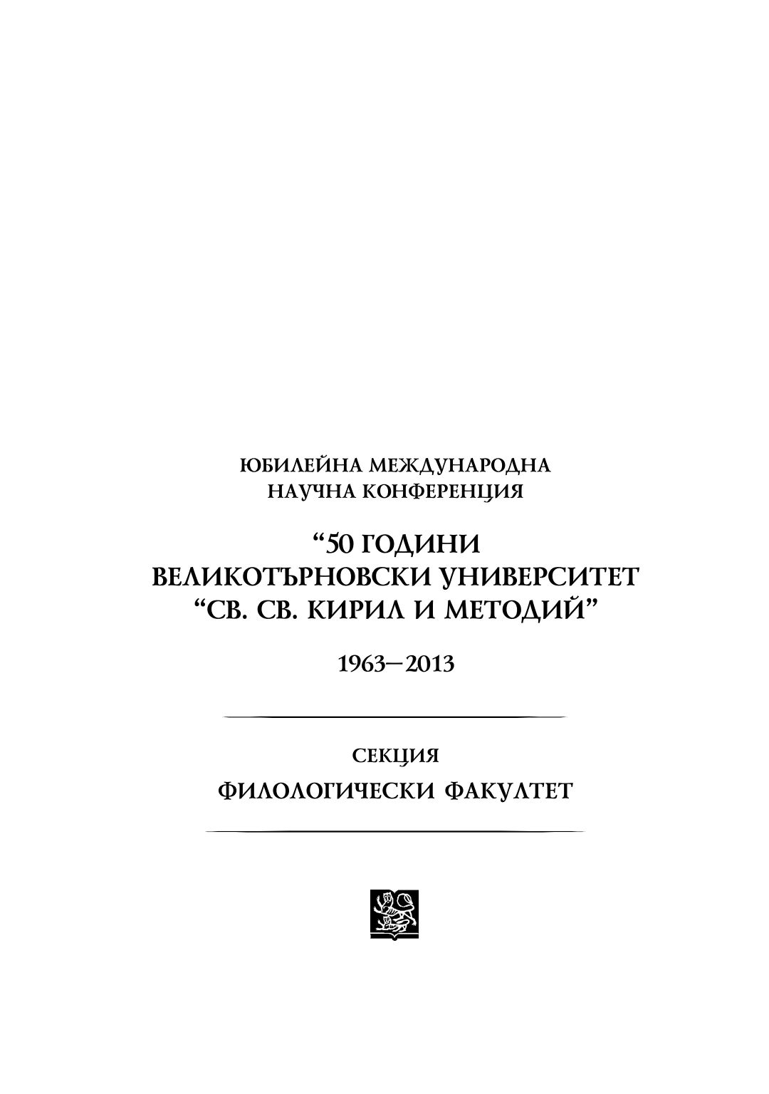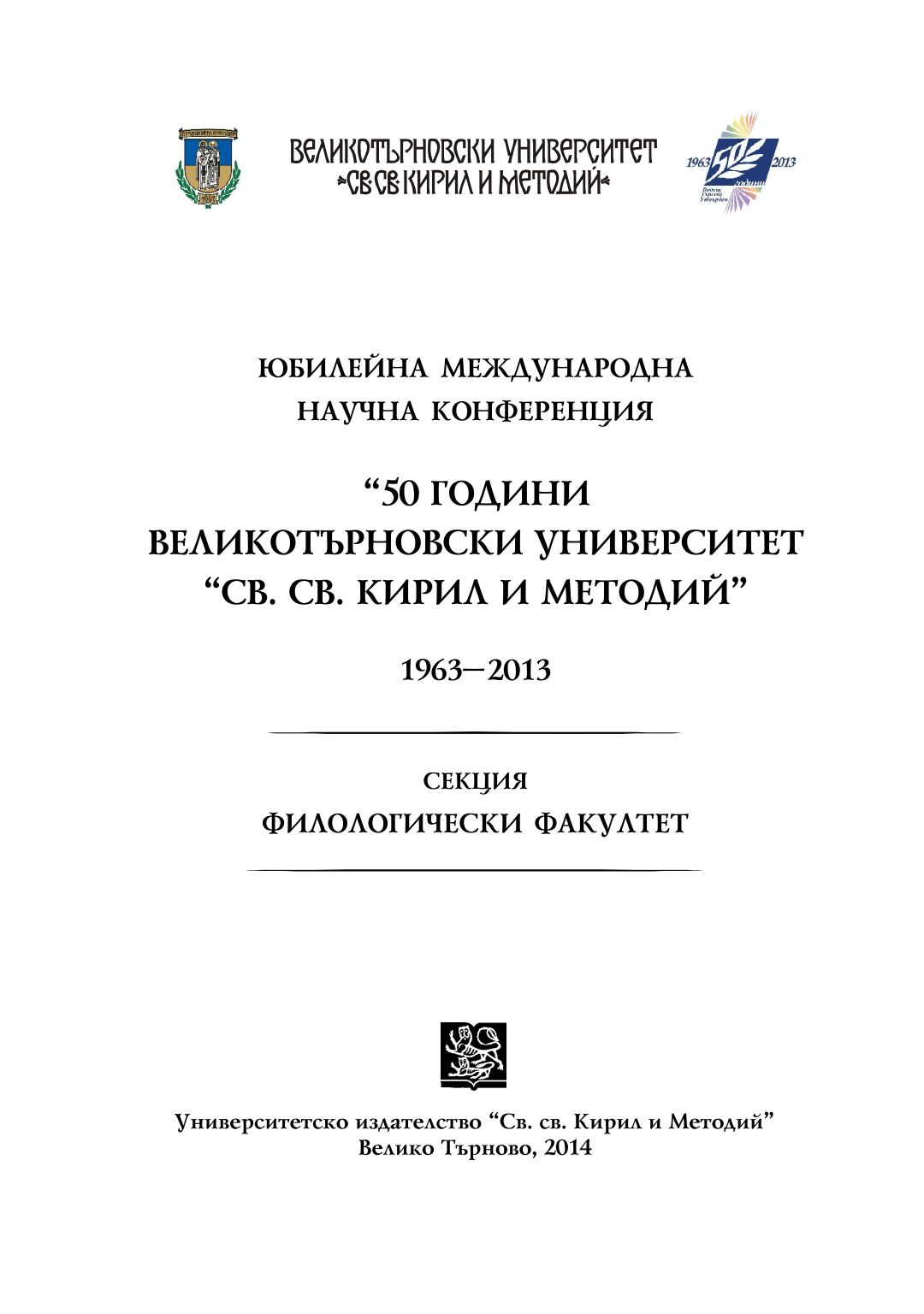 Юбилейна международна научна конференция "50 години Великотърновски университет "Св. св. Кирил и Методий" 1963-2013 : секция Филологически факултет