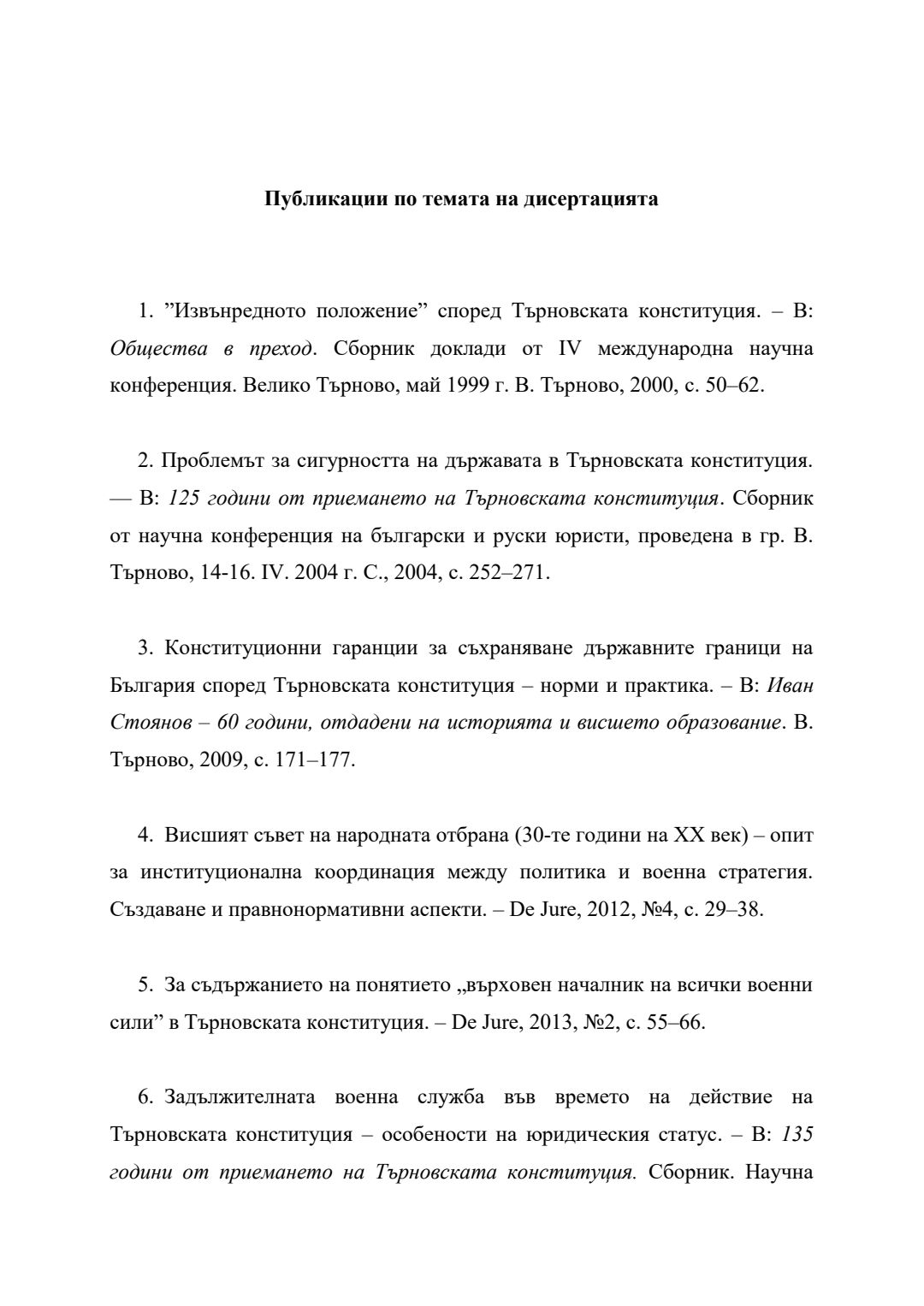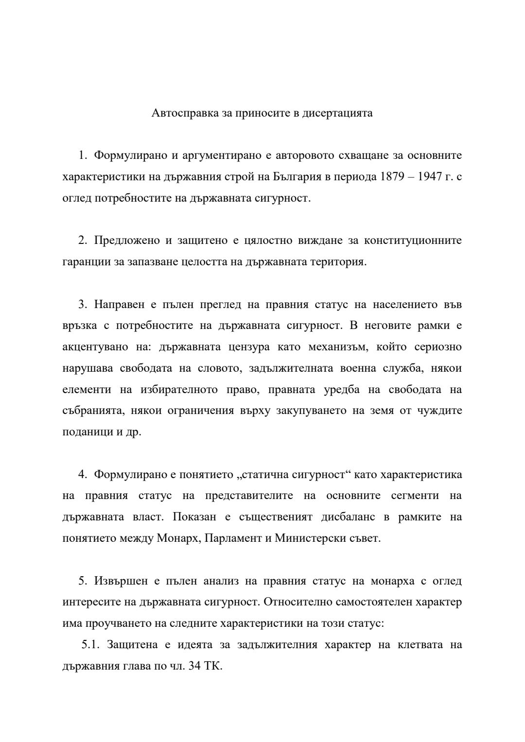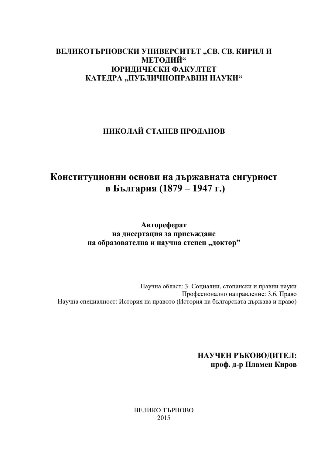 Конституционни основи на държавната сигурност в България (1879 - 1947 г.) : Автореферат / Николай Станев Проданов ; Науч. ръководител Пламен Киров