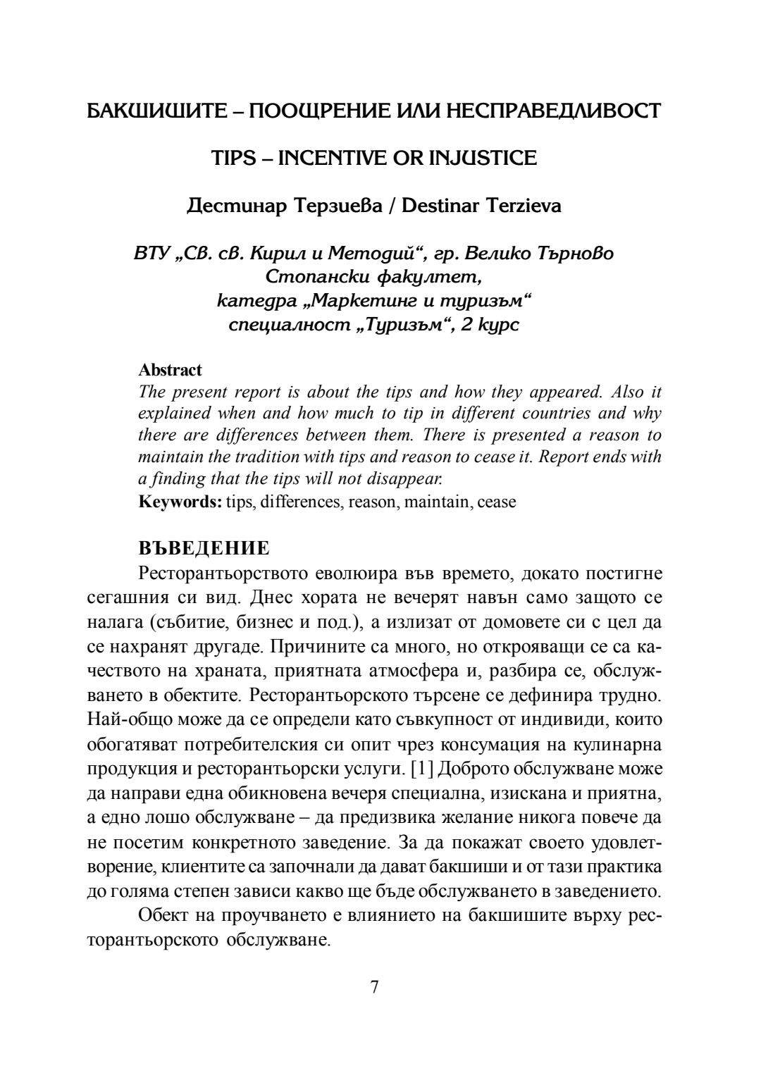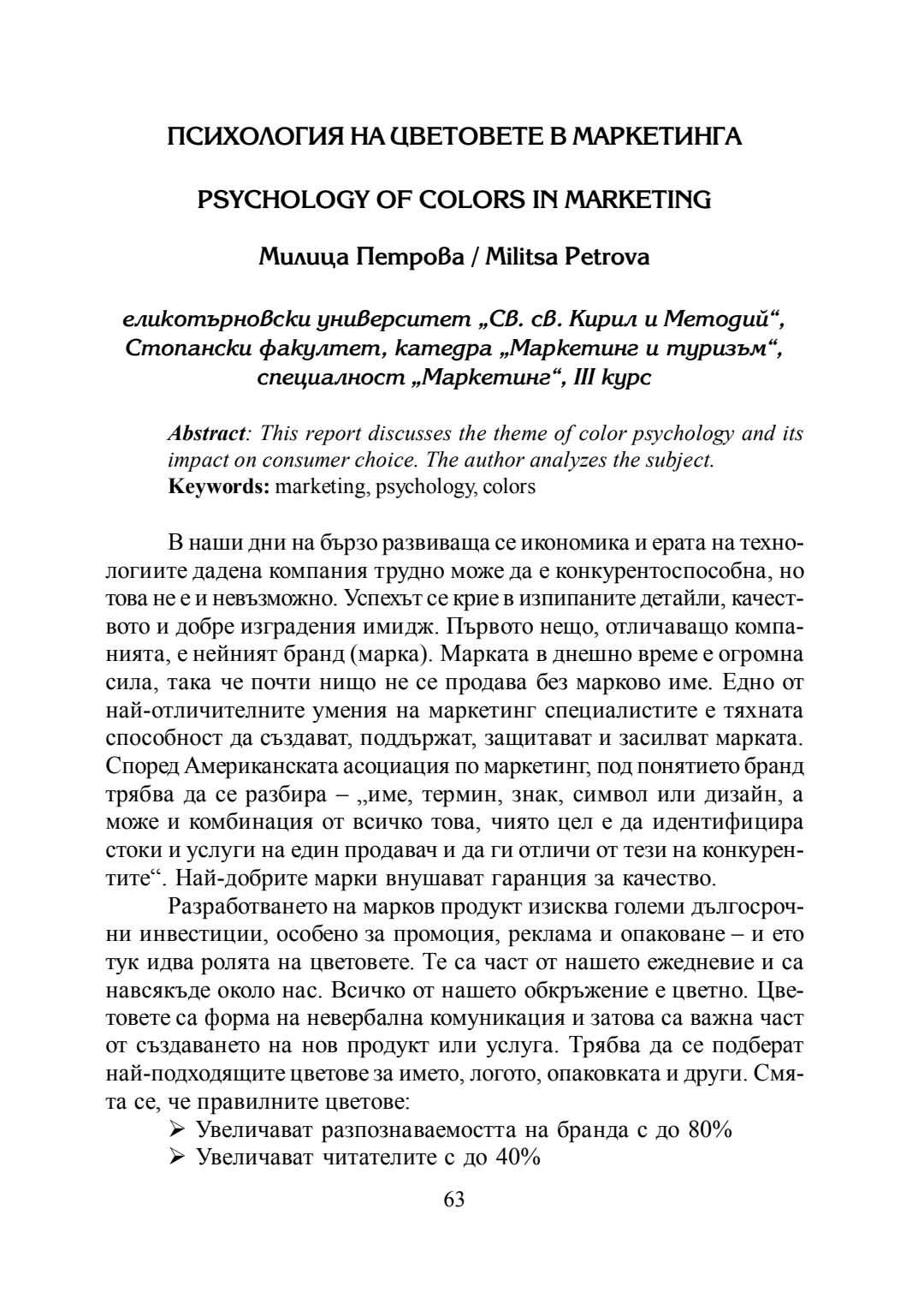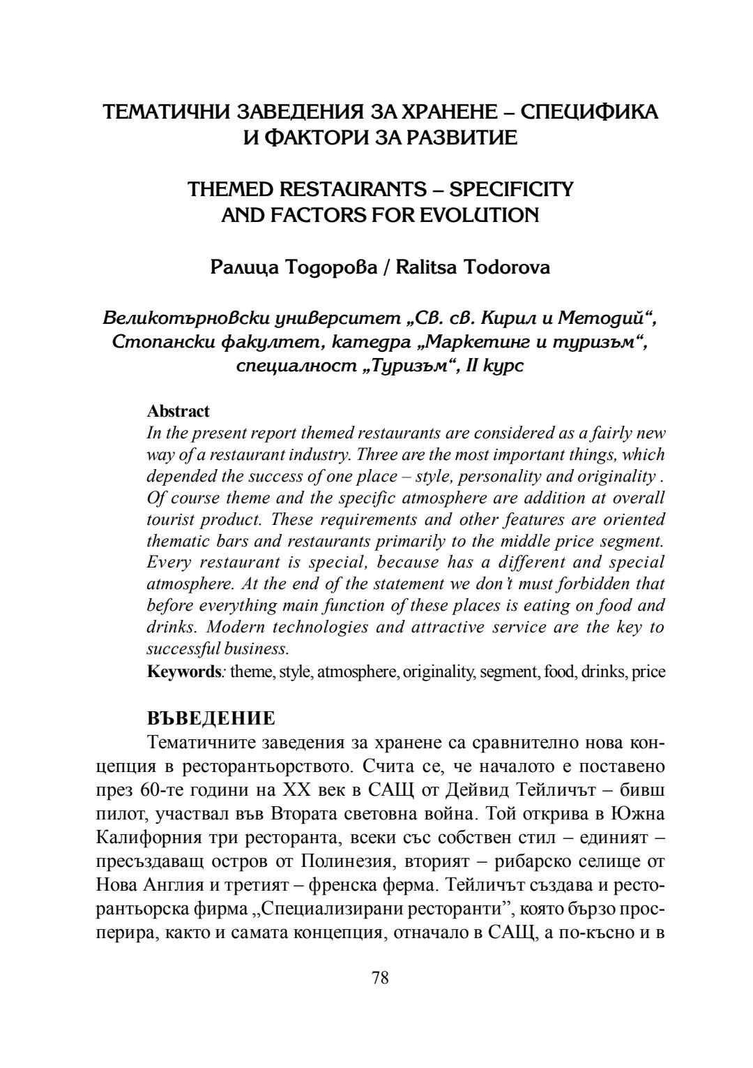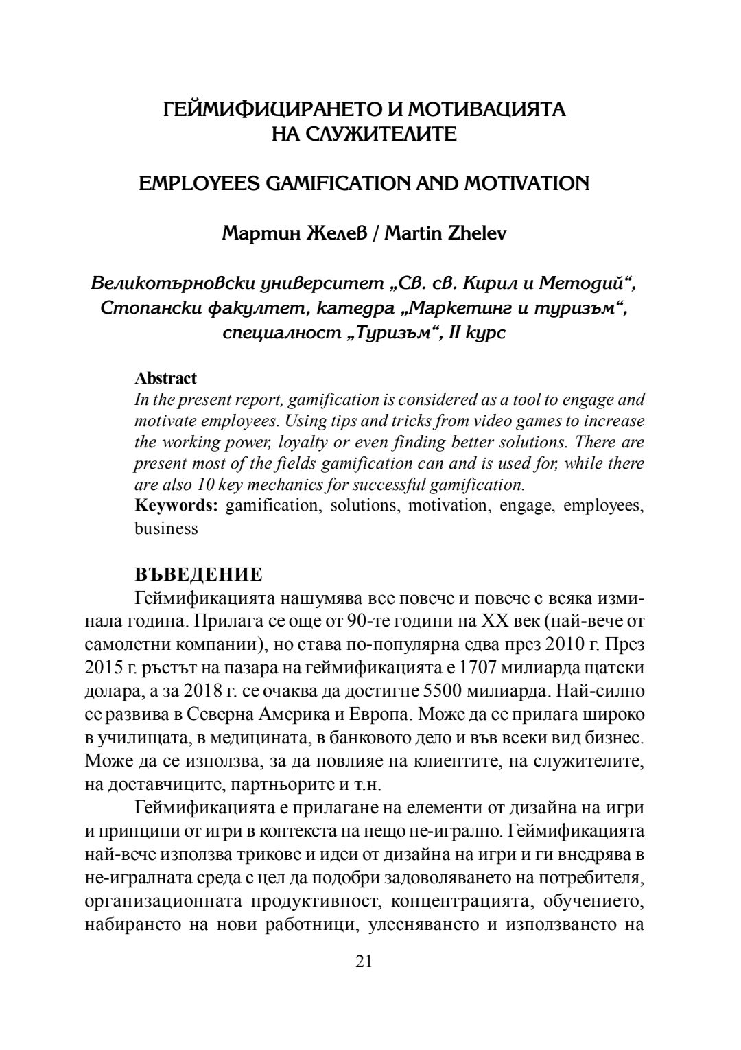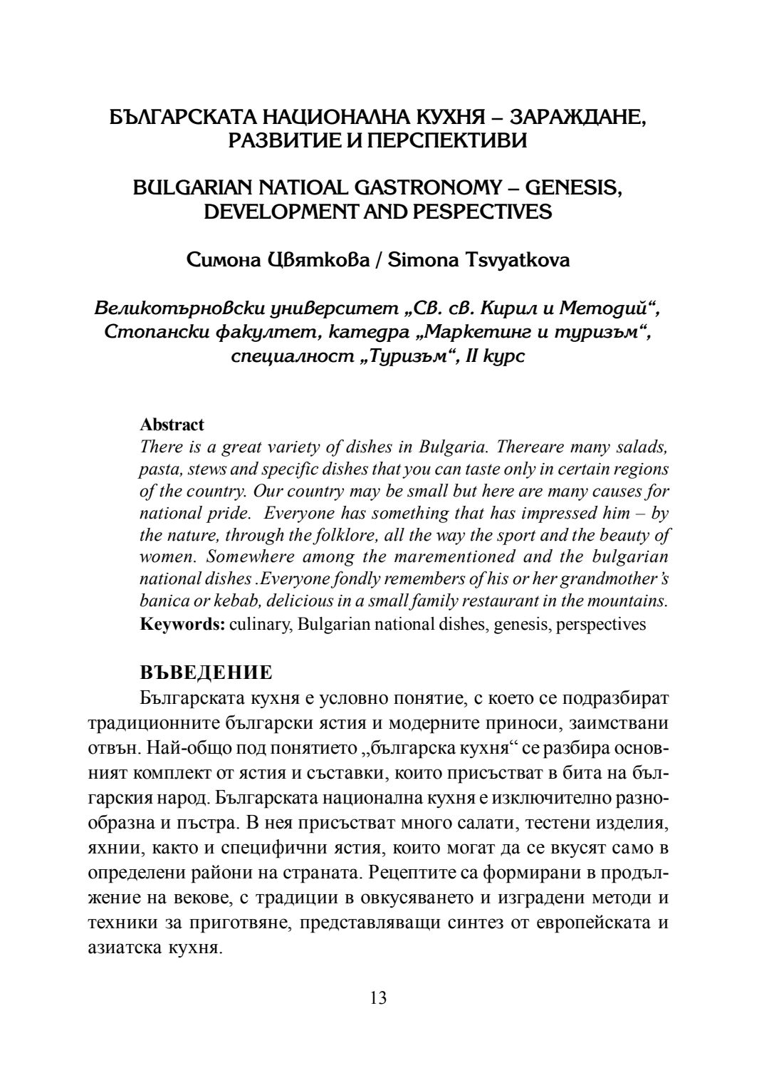 Студентска годишна научна конференция "Студентски идеи за предизвикателствата и възможностите за конкурентоспособно развитие на фирмите в сферата на маркетинга и туризма" [на] катедра Маркетинг и туризъм към Стопански факултет на Великотърновския университет "Св. св. Кирил и Методий", 20 май 2016 г., Велико Търново