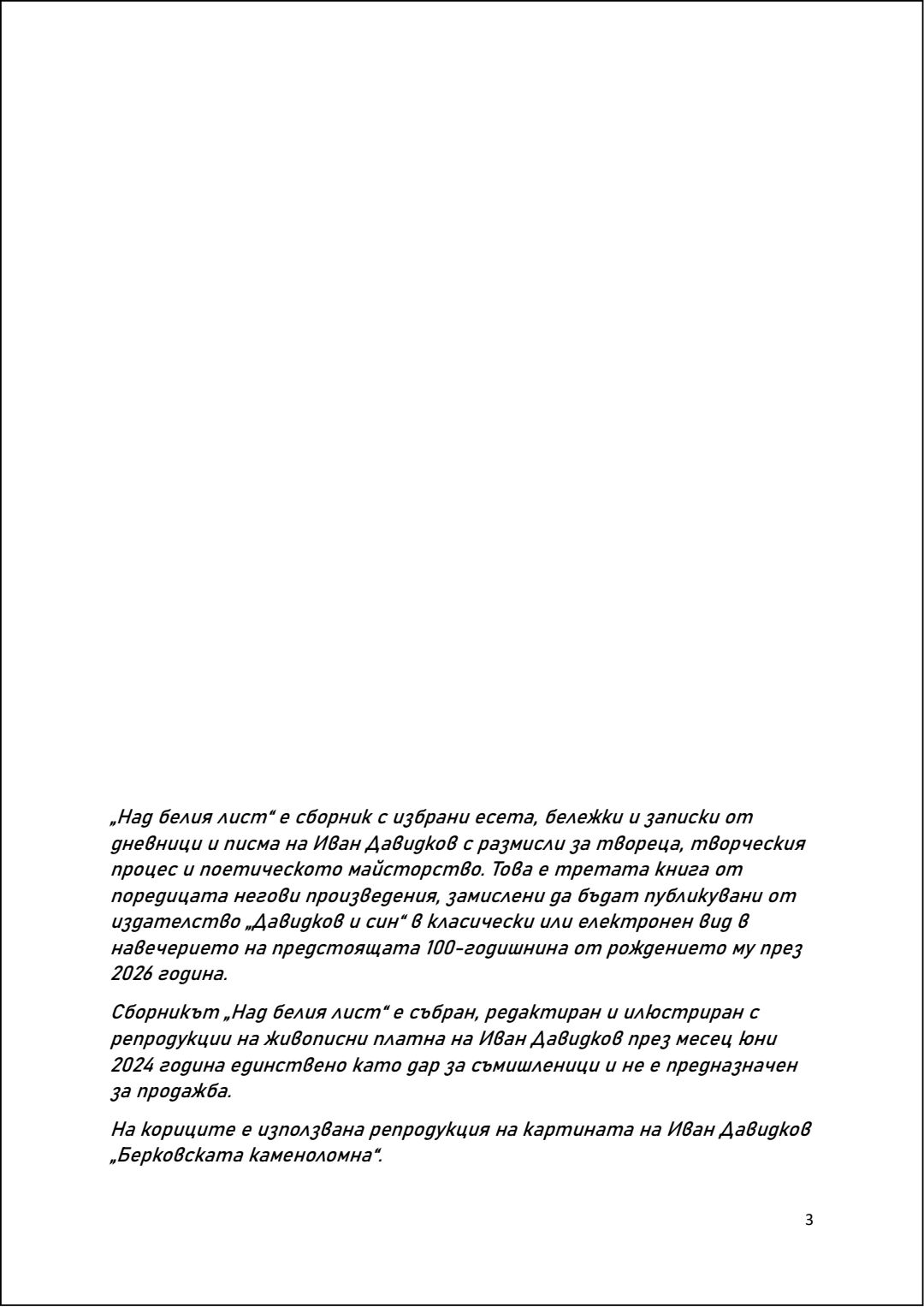 Над белия лист : Размисли, есета и бележки за твореца и творчеството
