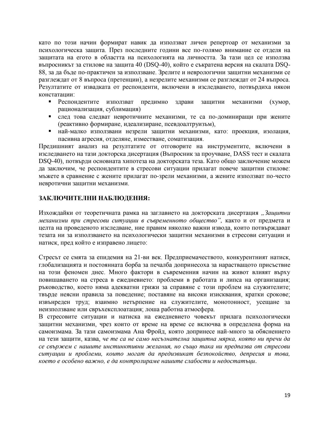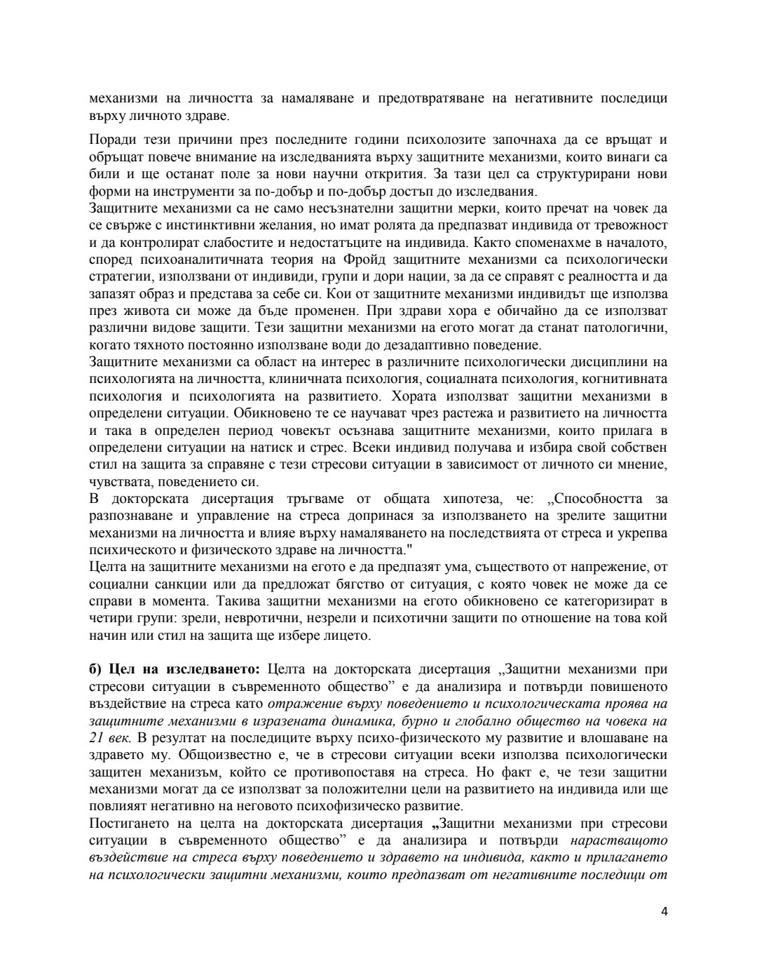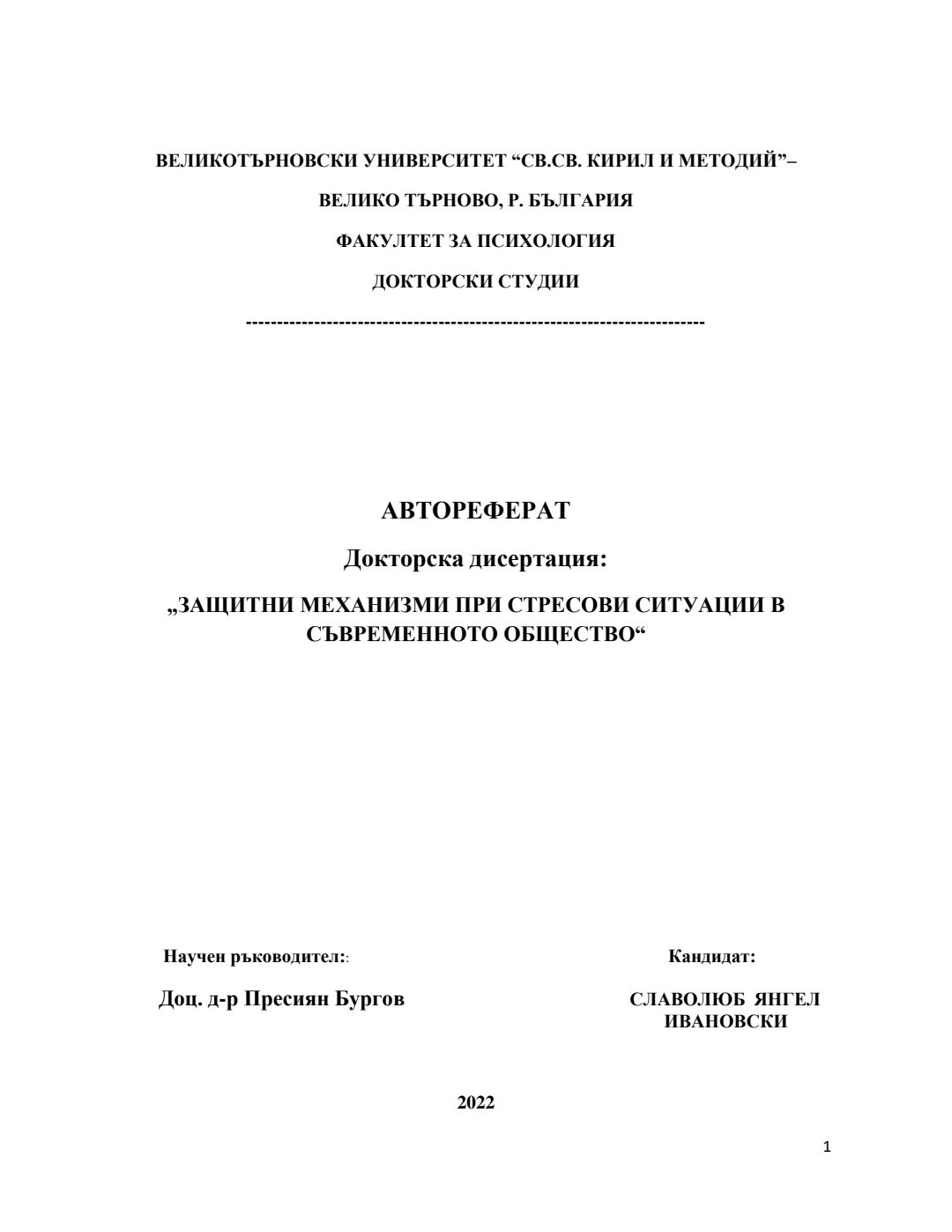 Защитни механизми при стресови ситуации в съвременното общество : Автореферат / Славолюб Янгел Ивановски ; Науч. ръководител Пресиян Бургов