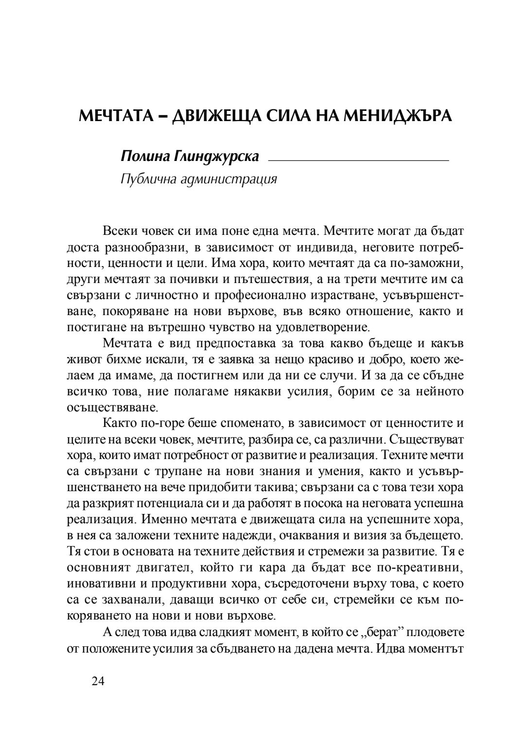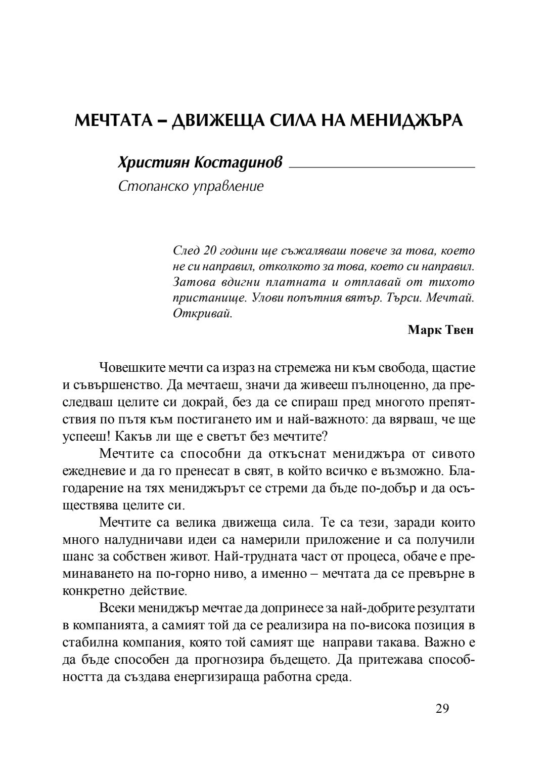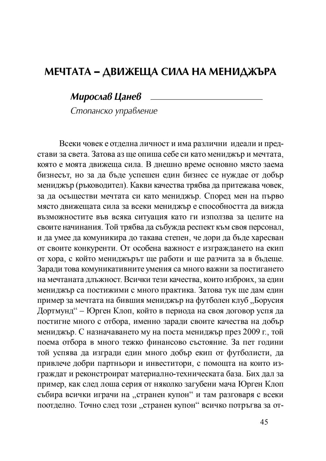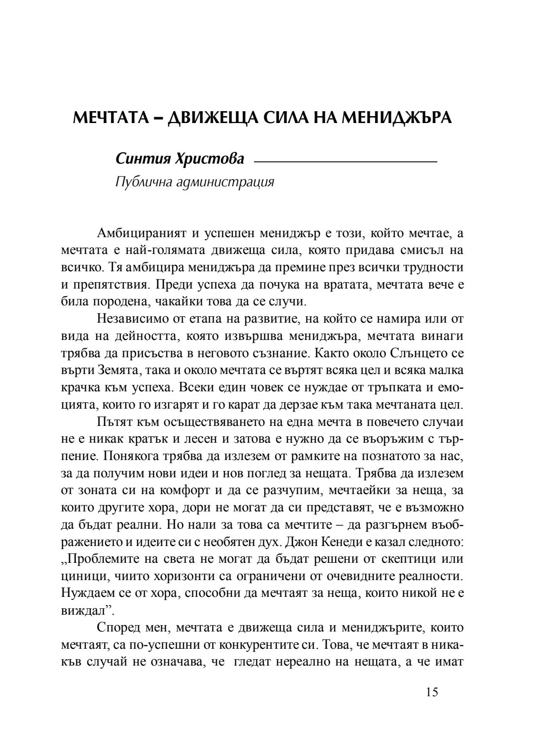 Мечтата - движеща сила на мениджъра : сборник с есета [от студентски конкурс], 20 април 2016 г.