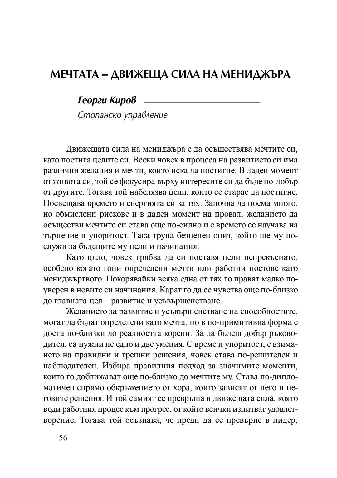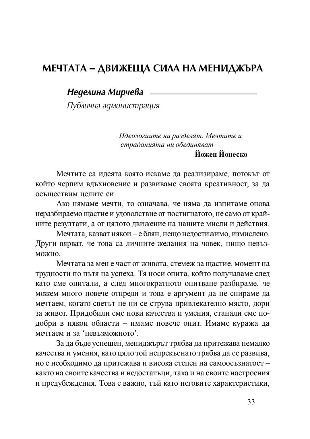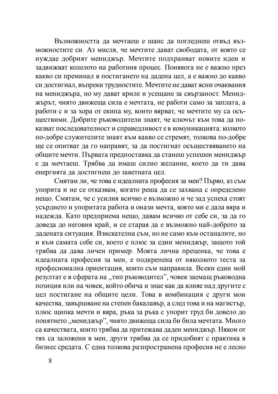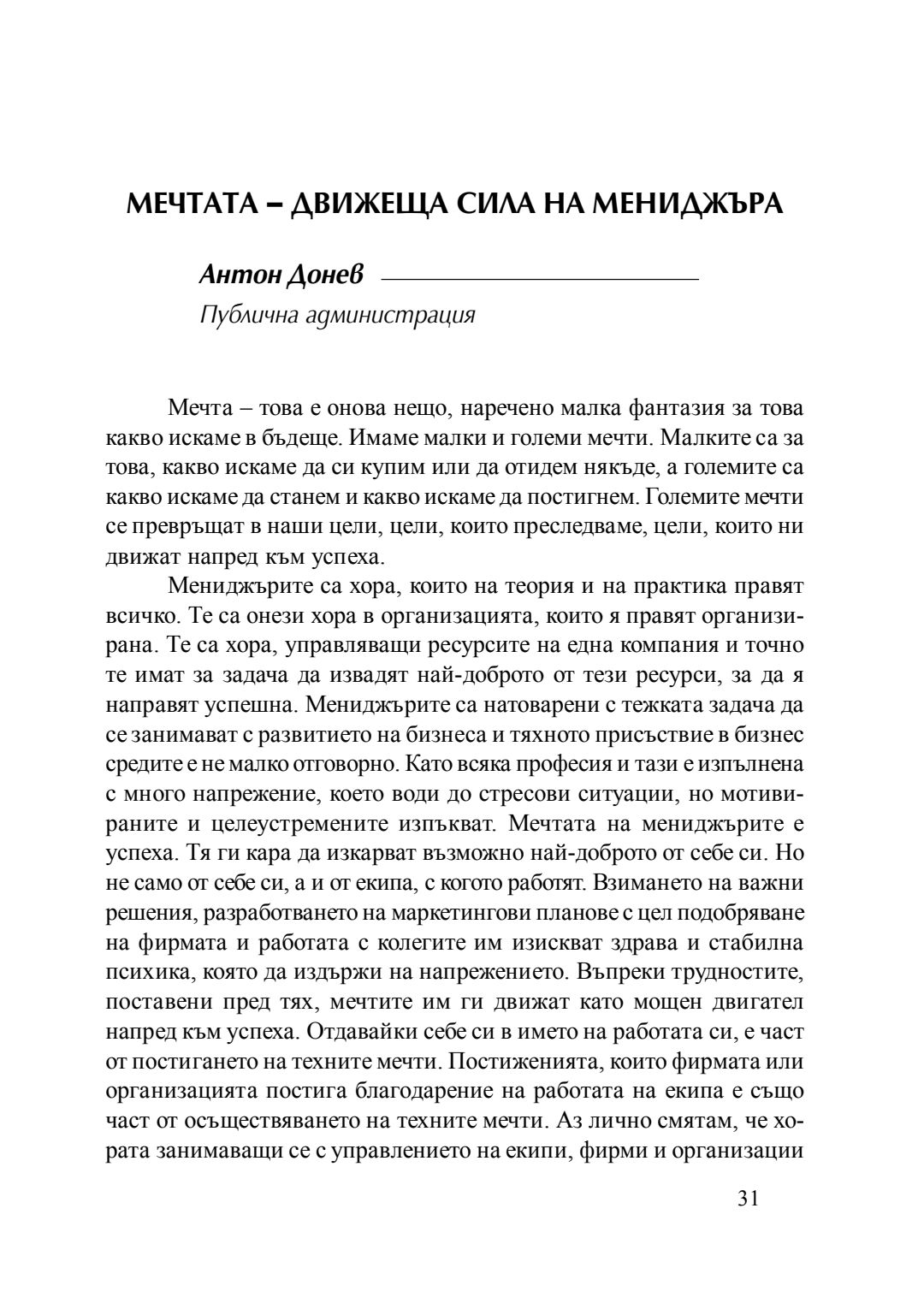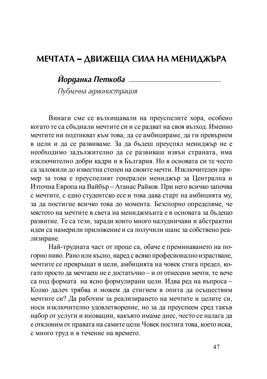 Мечтата - движеща сила на мениджъра : сборник с есета [от студентски конкурс], 20 април 2016 г.