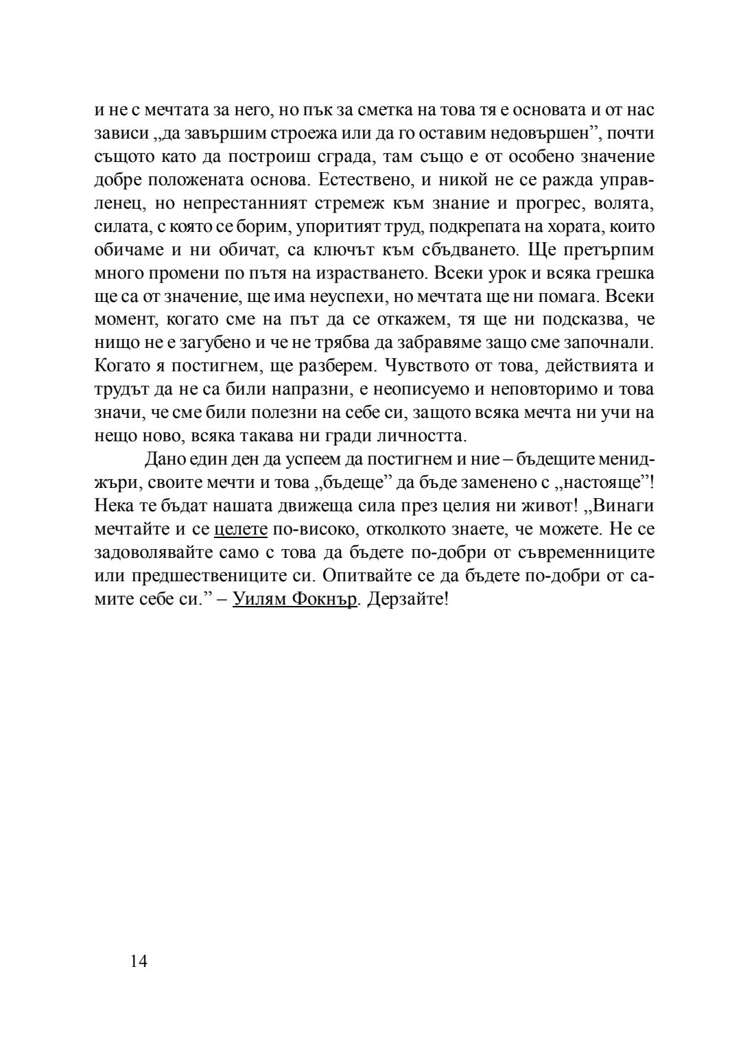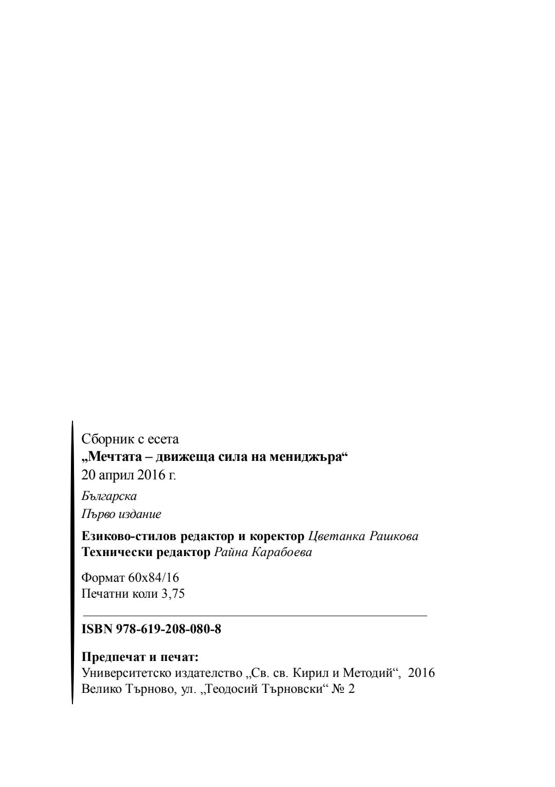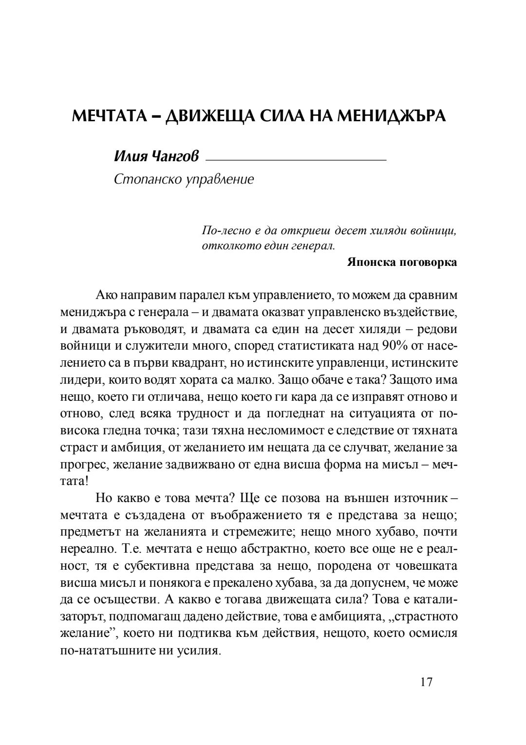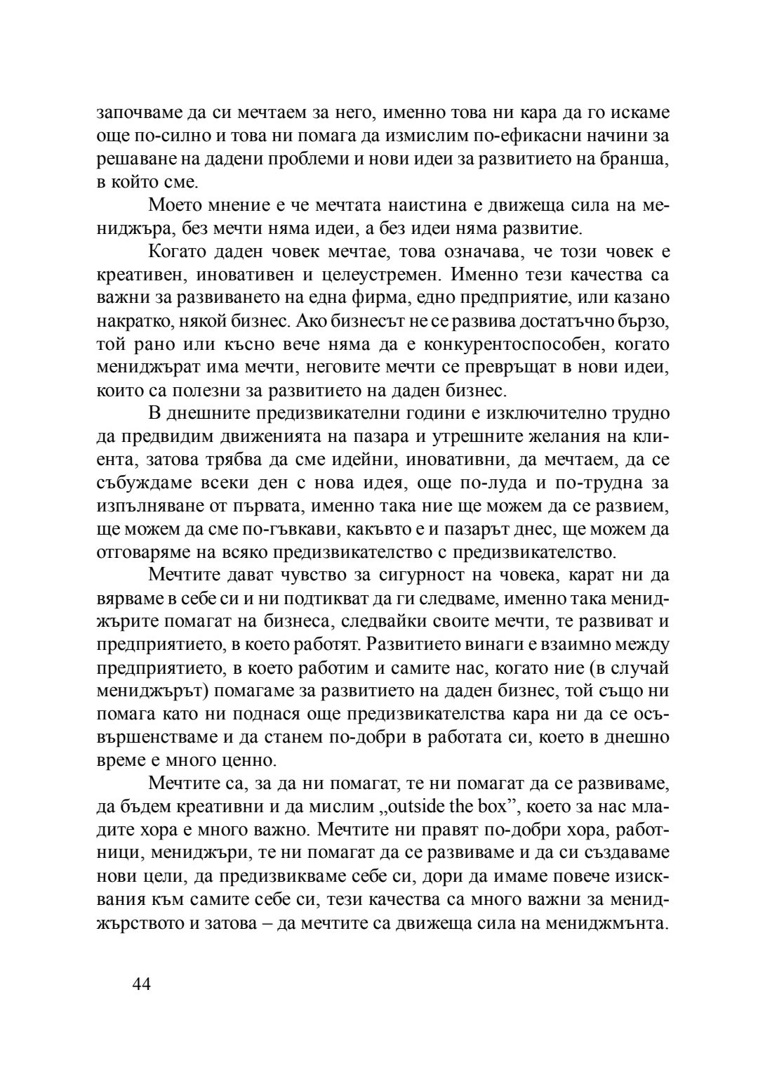 Мечтата - движеща сила на мениджъра : сборник с есета [от студентски конкурс], 20 април 2016 г.