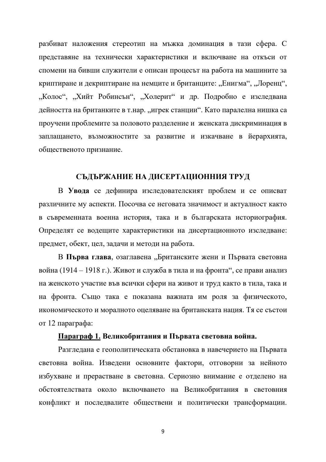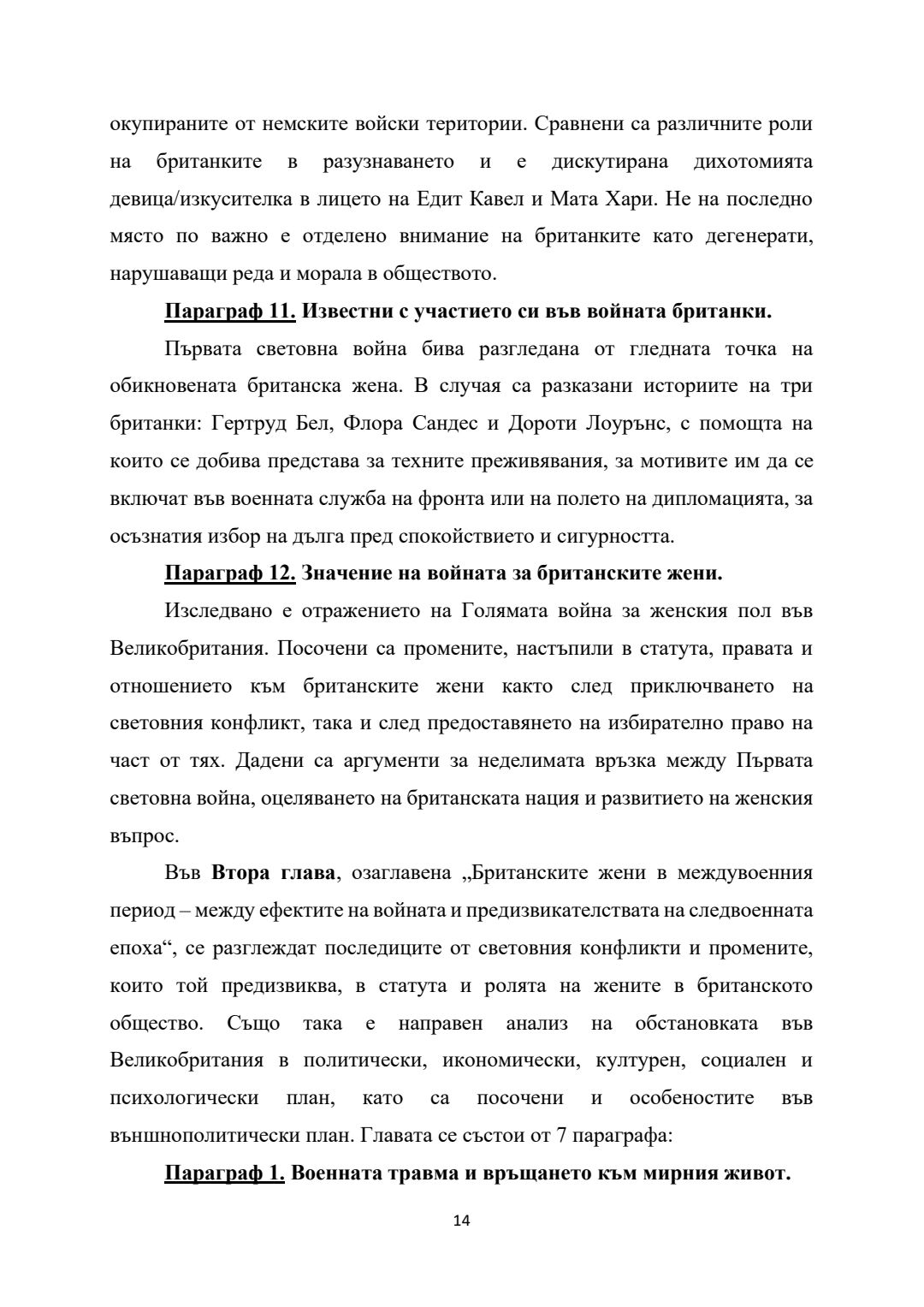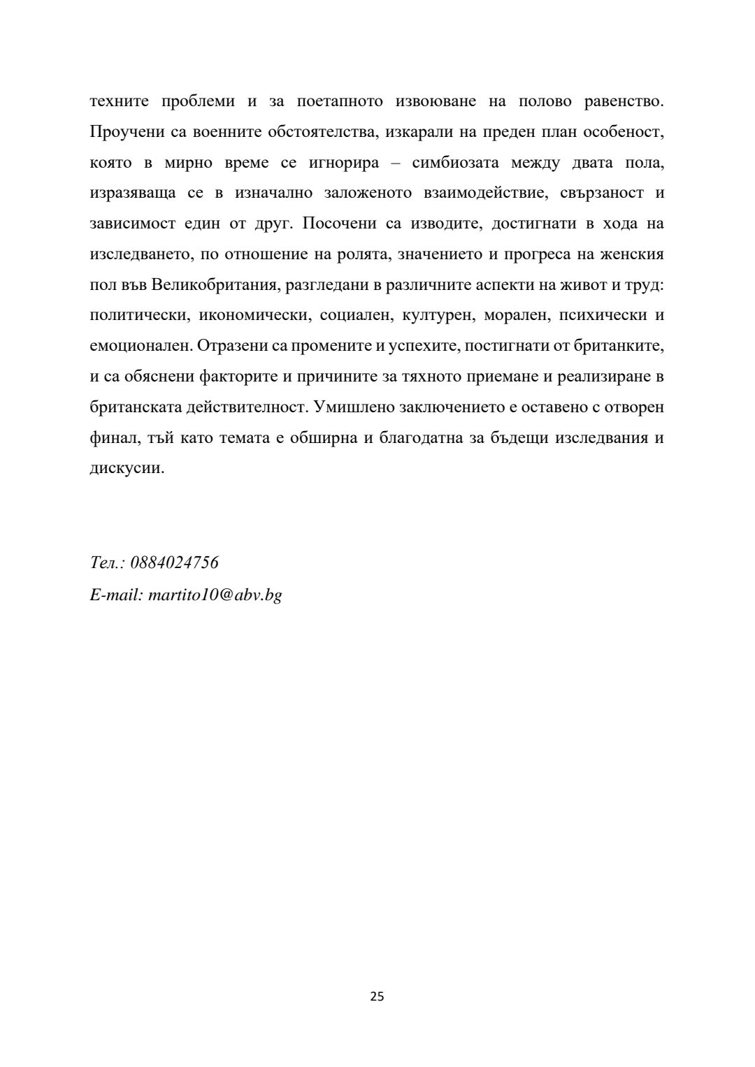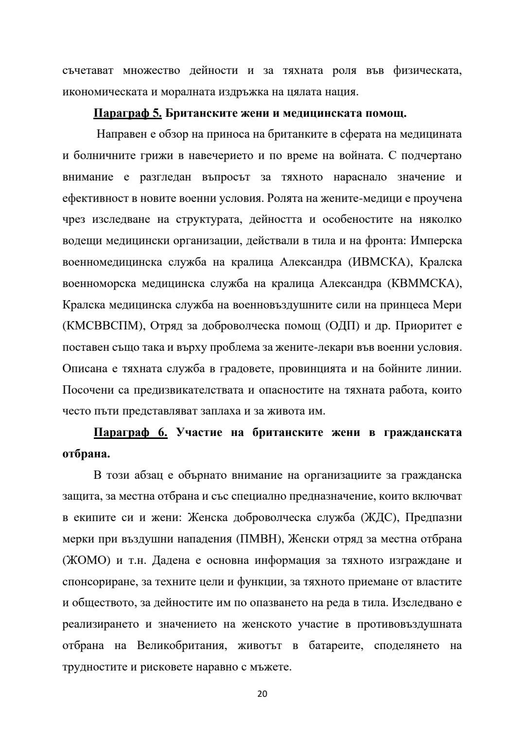 Британските жени и двете световни войни : Автореферат / Мартина Стефанова Чобанова ; Науч. ръководител Силвия Александрова