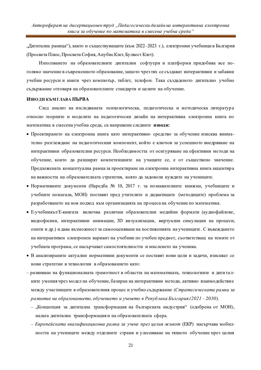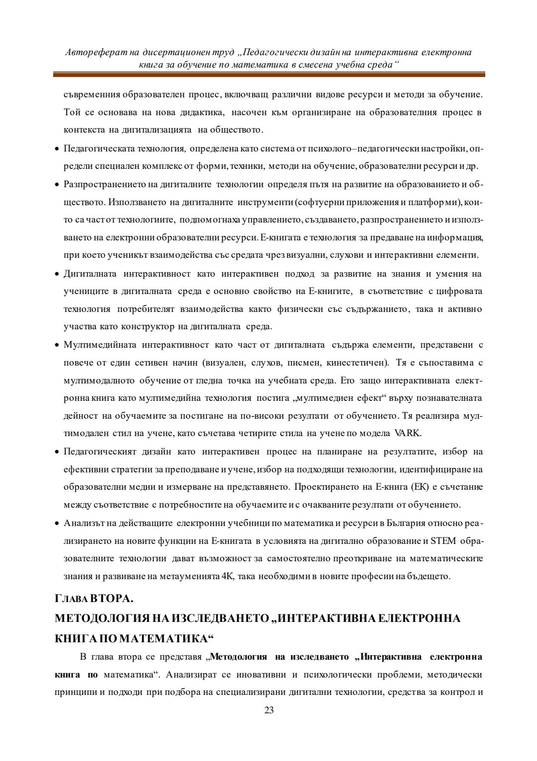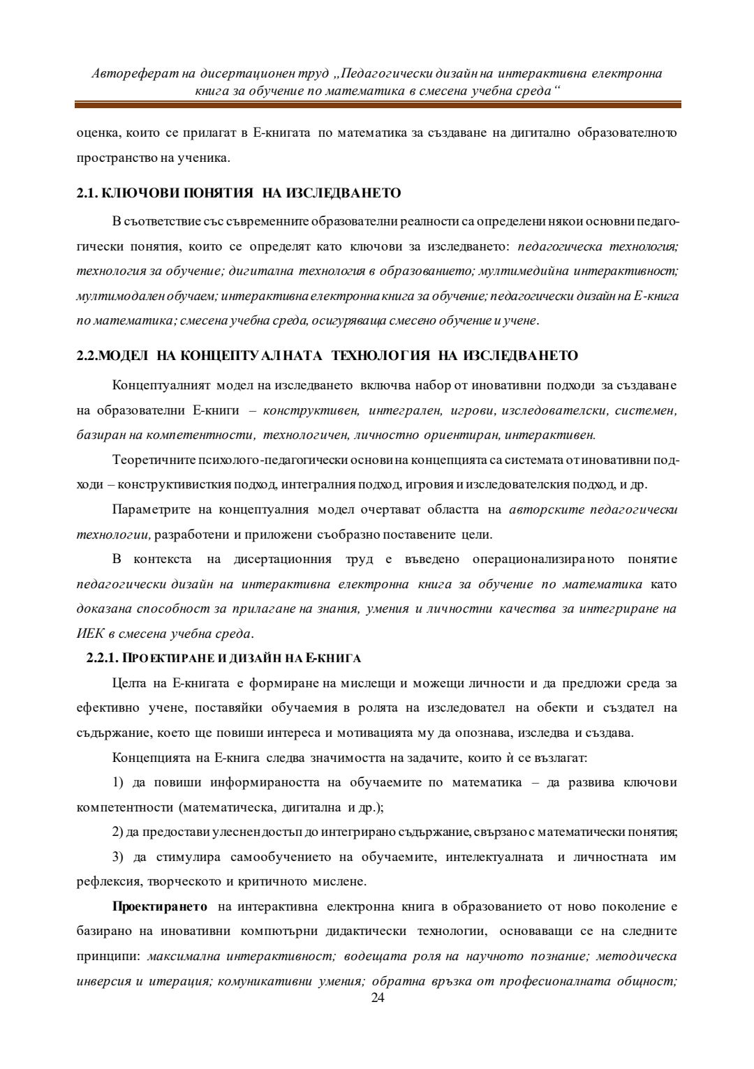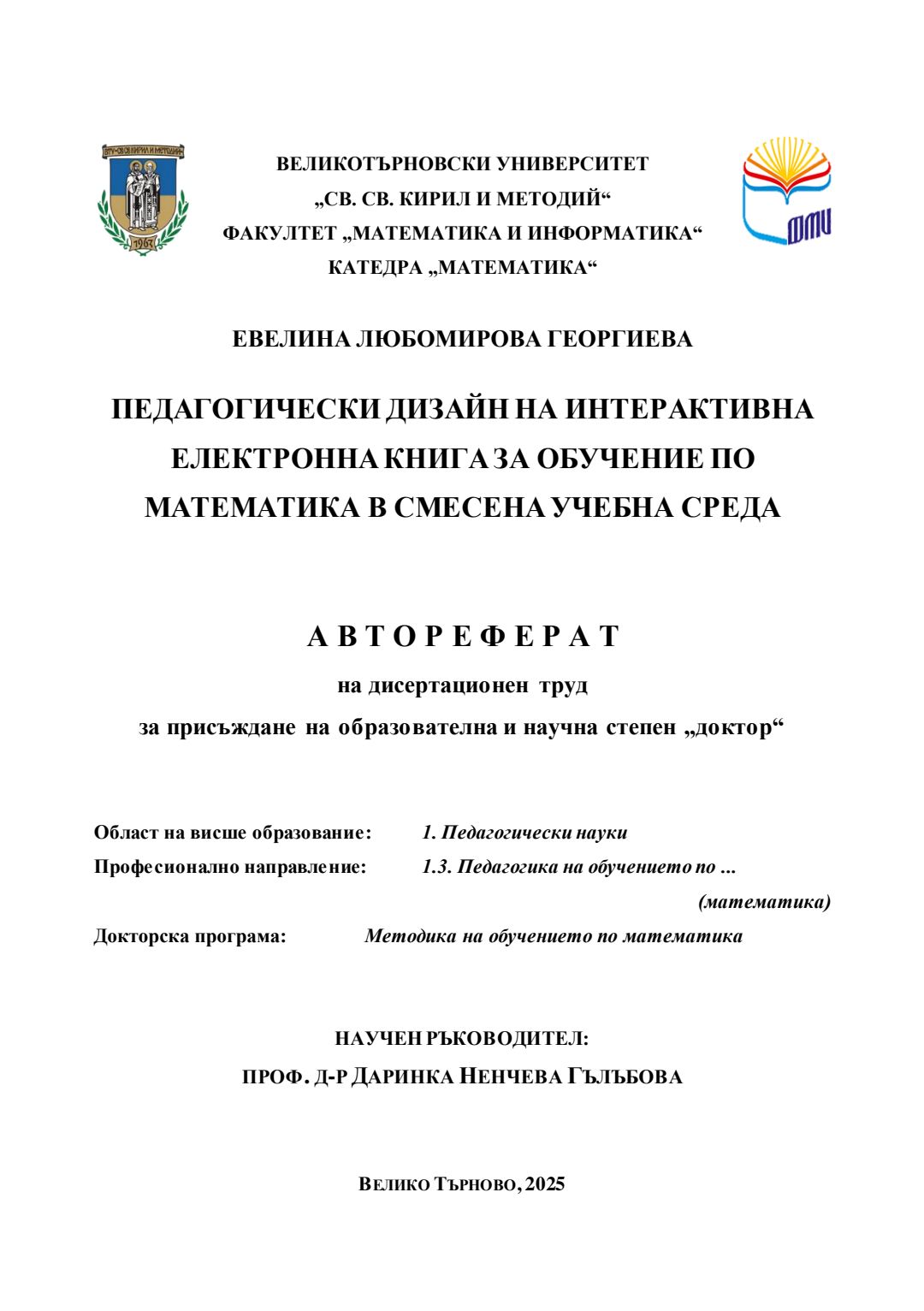Педагогически дизайн на интерактивна електронна книга за обучение по математика в смесена учебна среда : Автореферат / Евелина Любомирова Георгиева ; Науч. ръководител Даринка Гълъбова