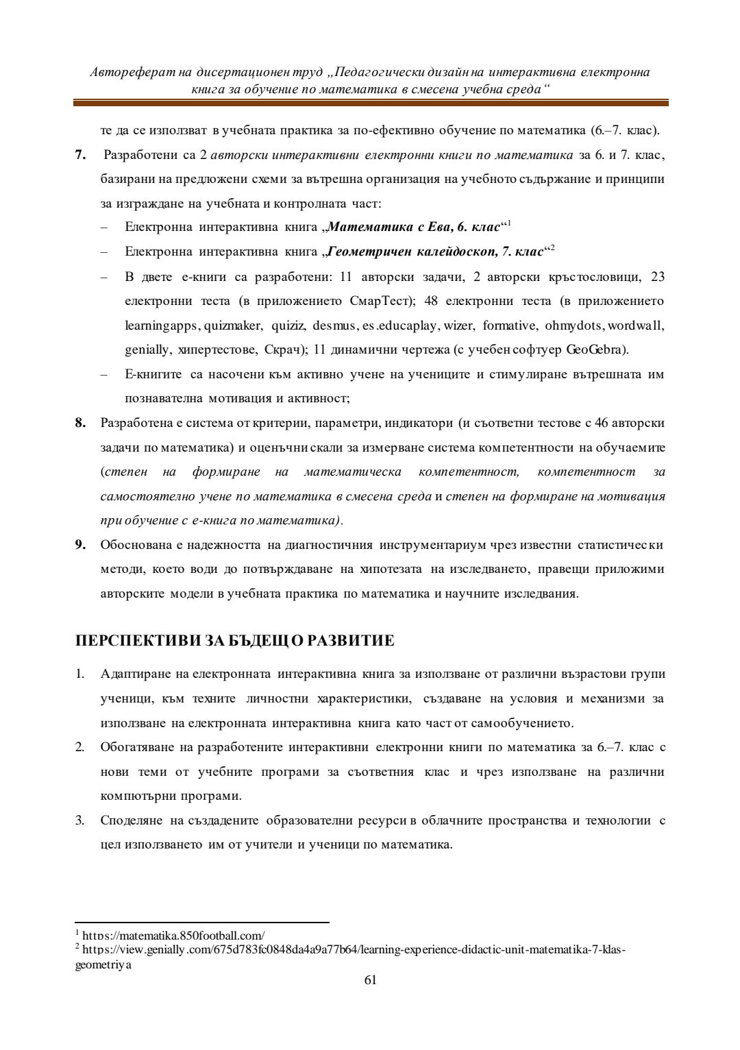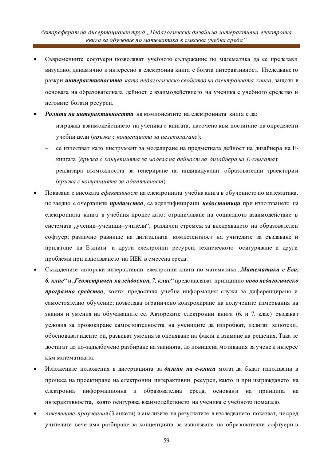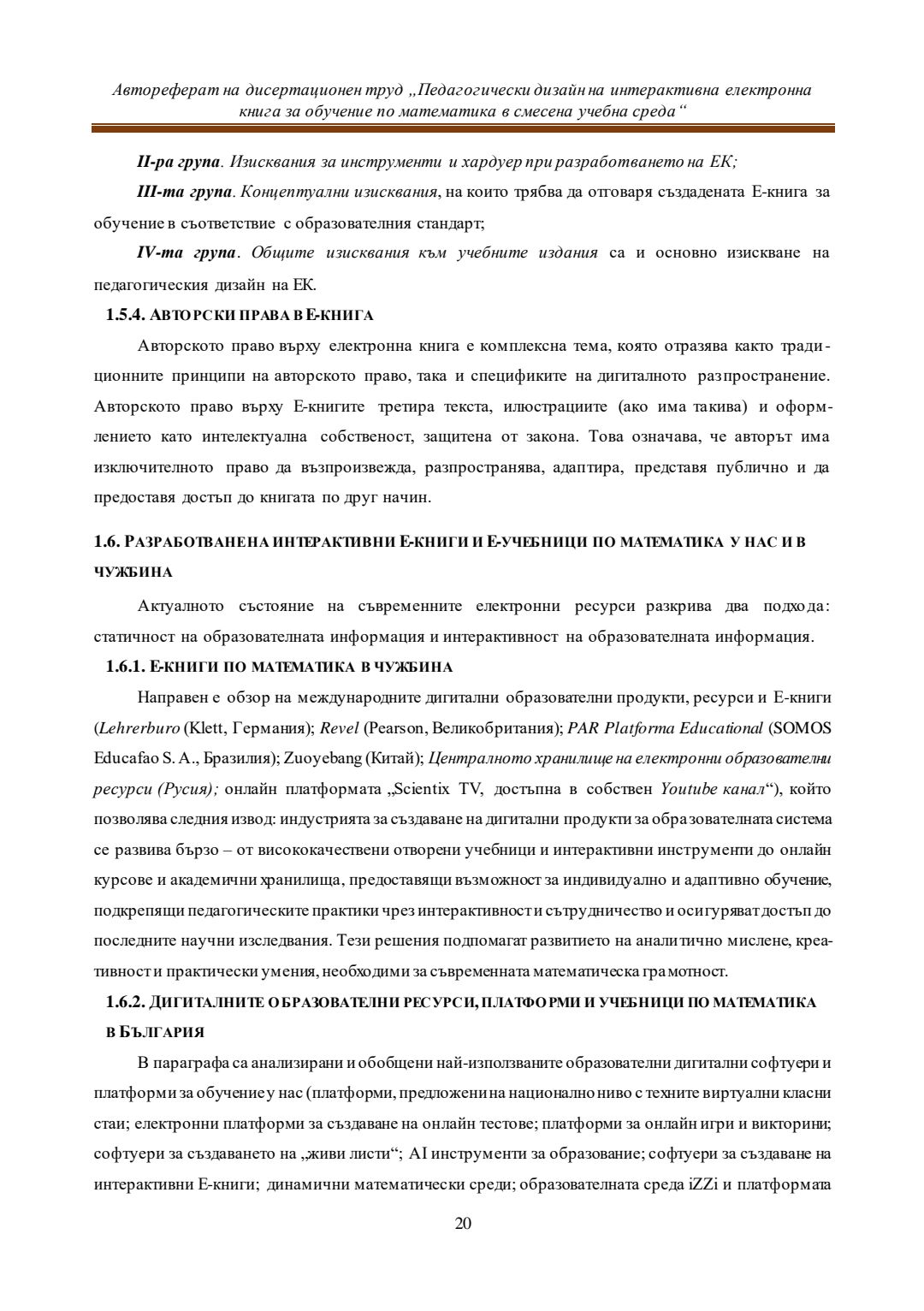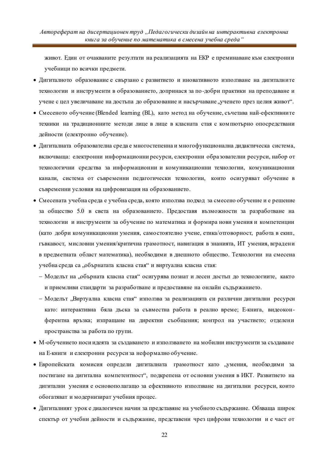 Педагогически дизайн на интерактивна електронна книга за обучение по математика в смесена учебна среда : Автореферат / Евелина Любомирова Георгиева ; Науч. ръководител Даринка Гълъбова