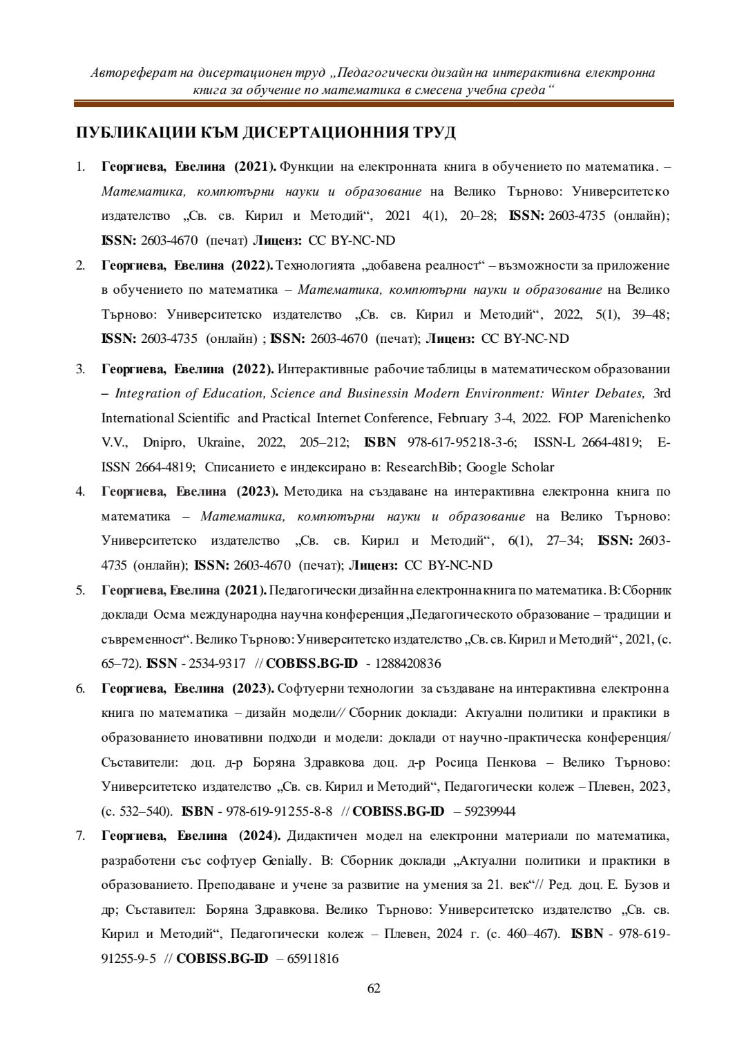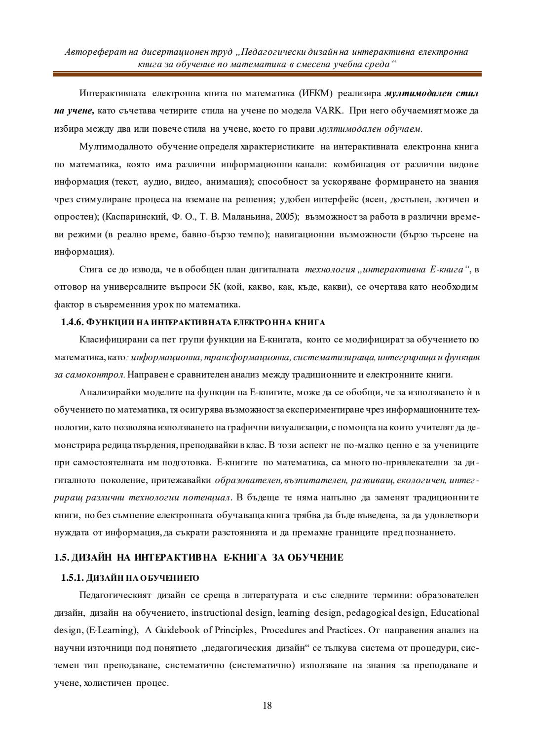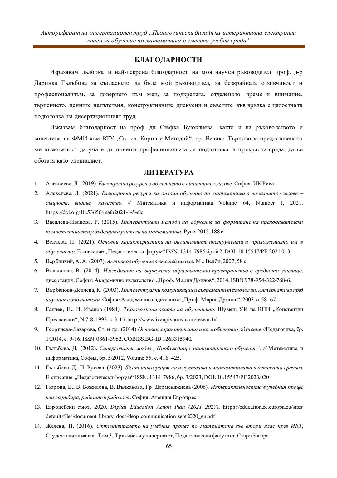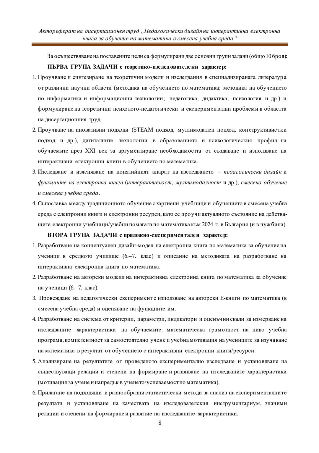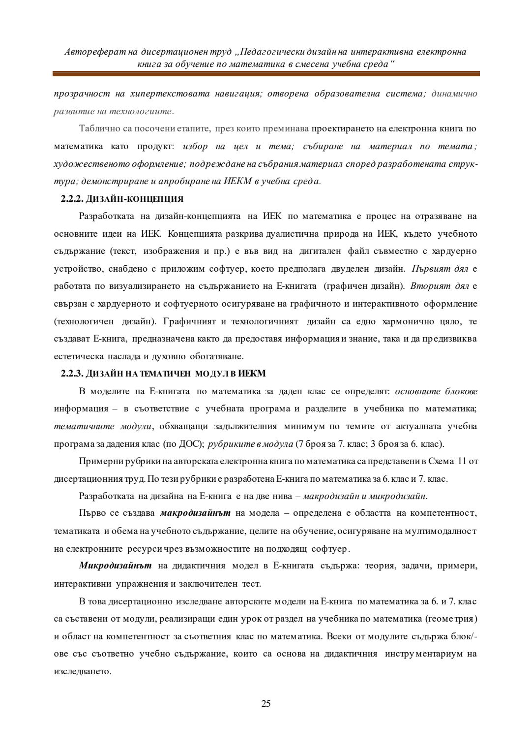 Педагогически дизайн на интерактивна електронна книга за обучение по математика в смесена учебна среда : Автореферат / Евелина Любомирова Георгиева ; Науч. ръководител Даринка Гълъбова