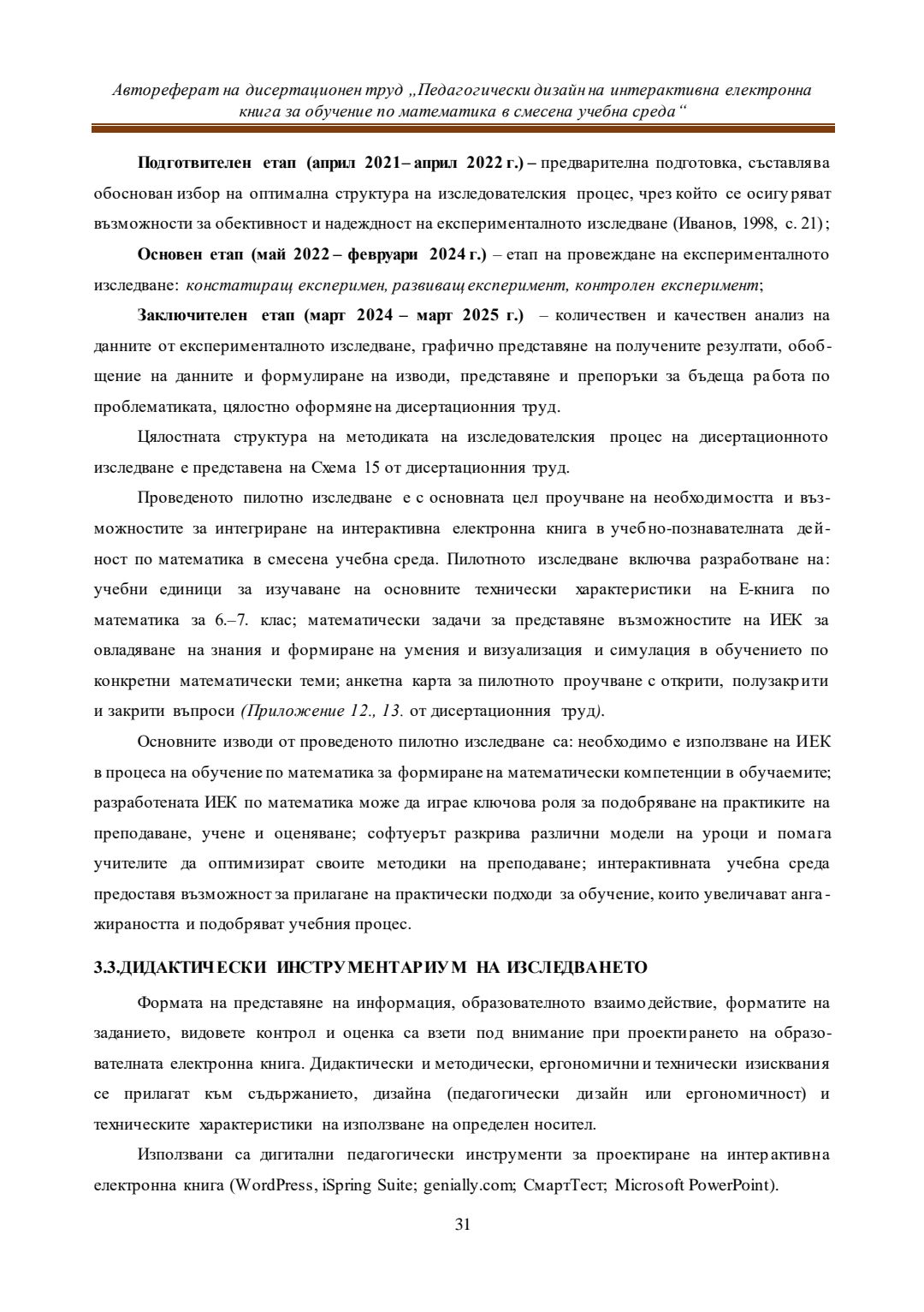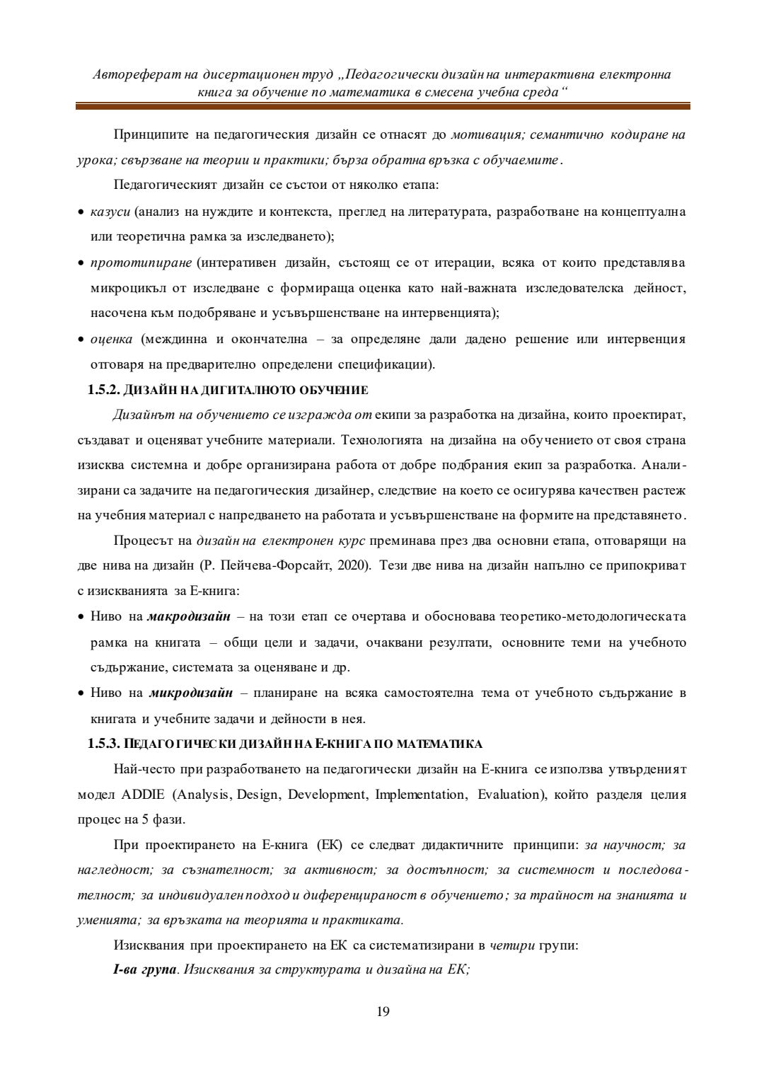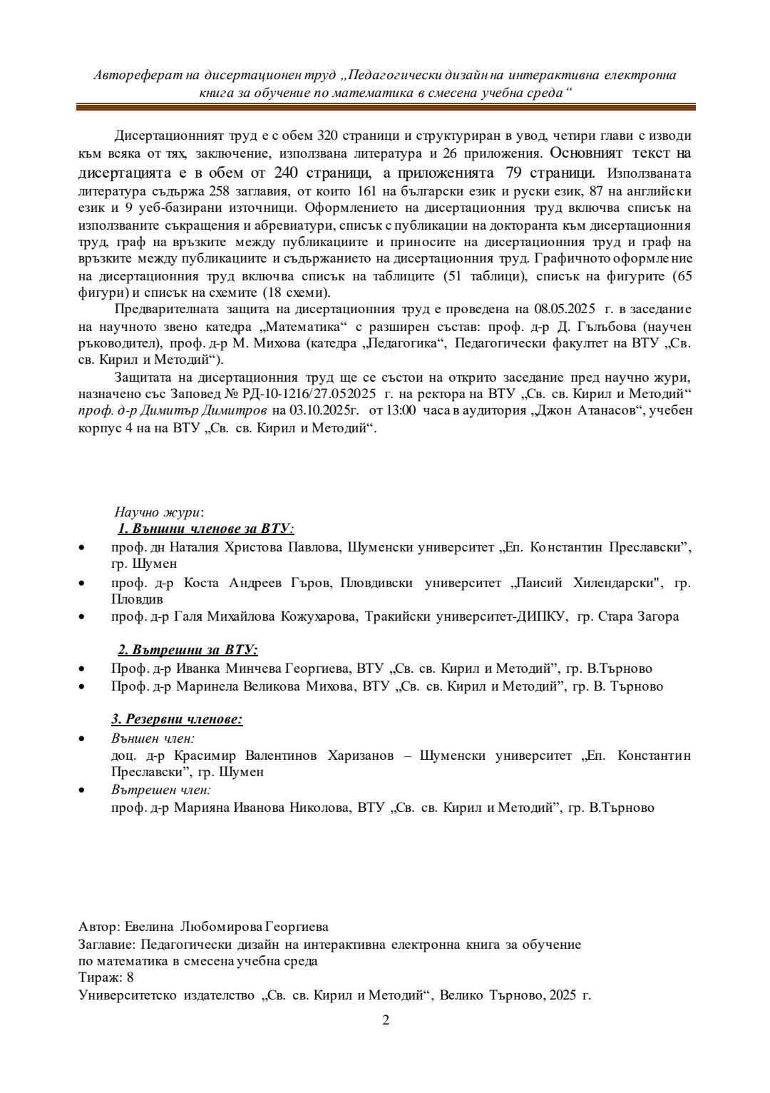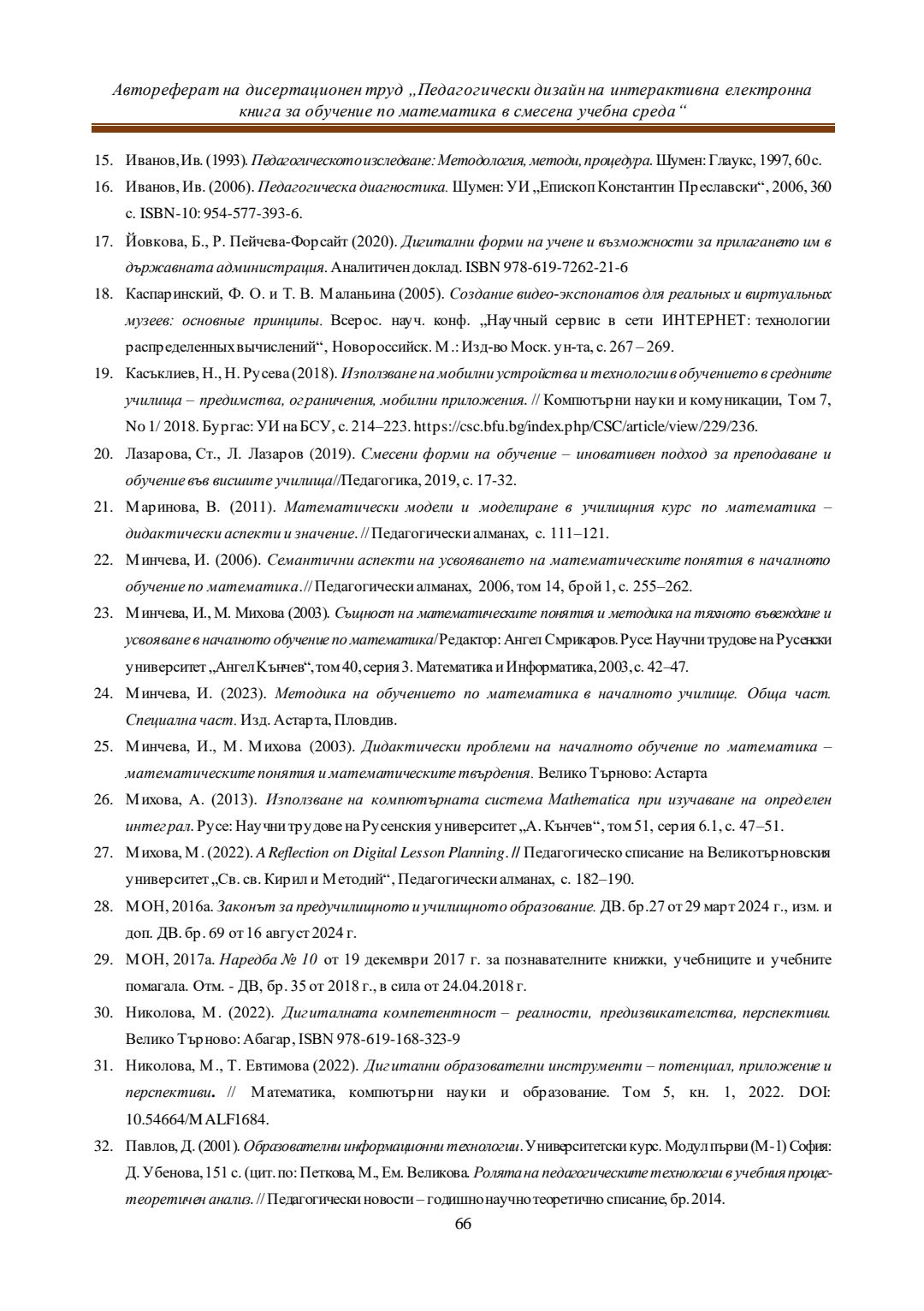 Педагогически дизайн на интерактивна електронна книга за обучение по математика в смесена учебна среда : Автореферат / Евелина Любомирова Георгиева ; Науч. ръководител Даринка Гълъбова