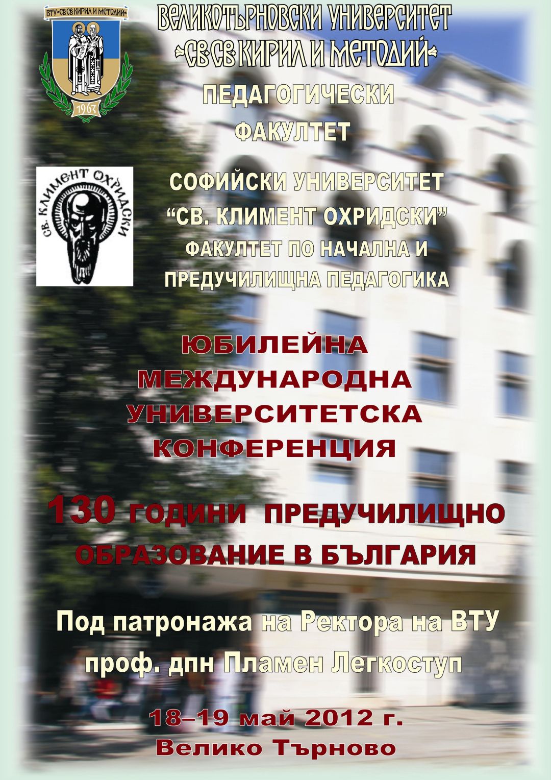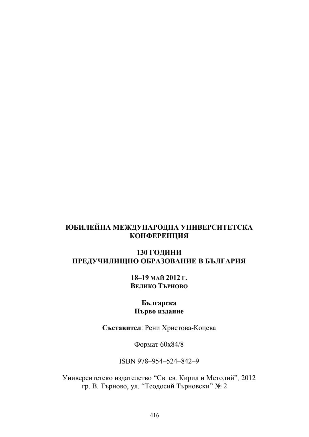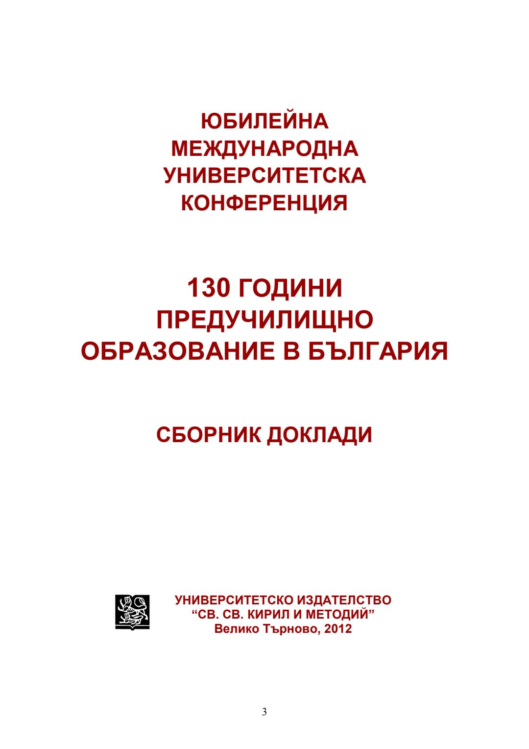 Юбилейна международна университетска конференция 130 години предучилищно образование в България, 18-19 май 2012, Велико Търново : сборник доклади
