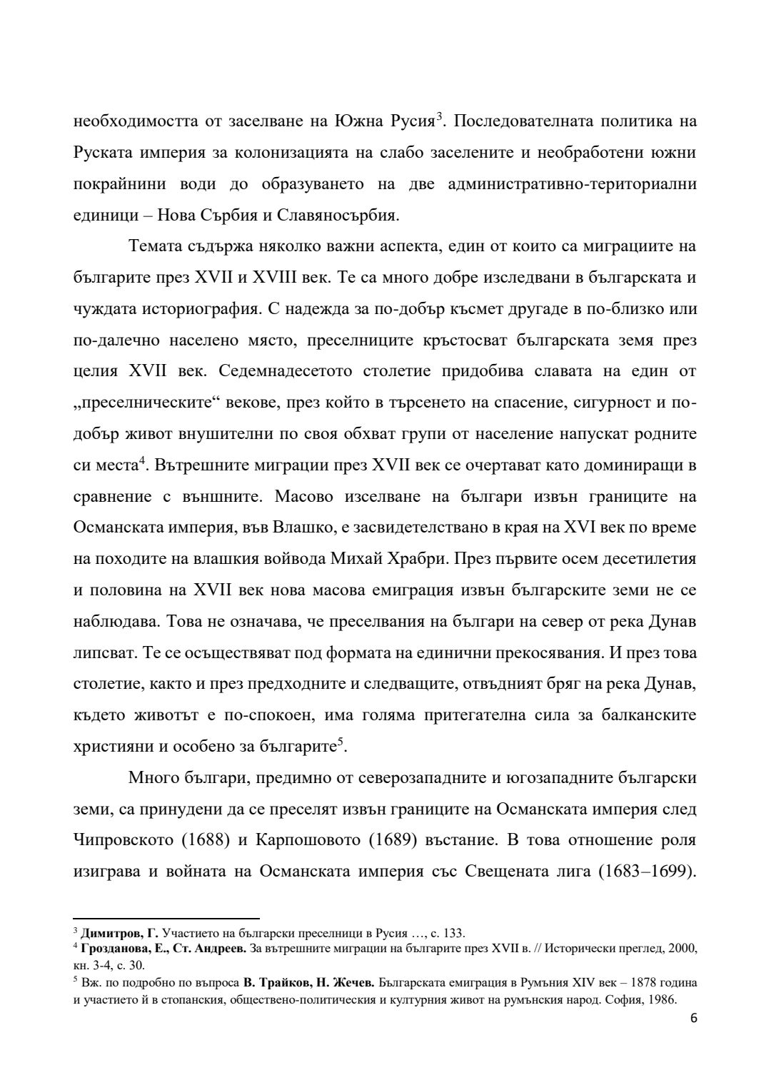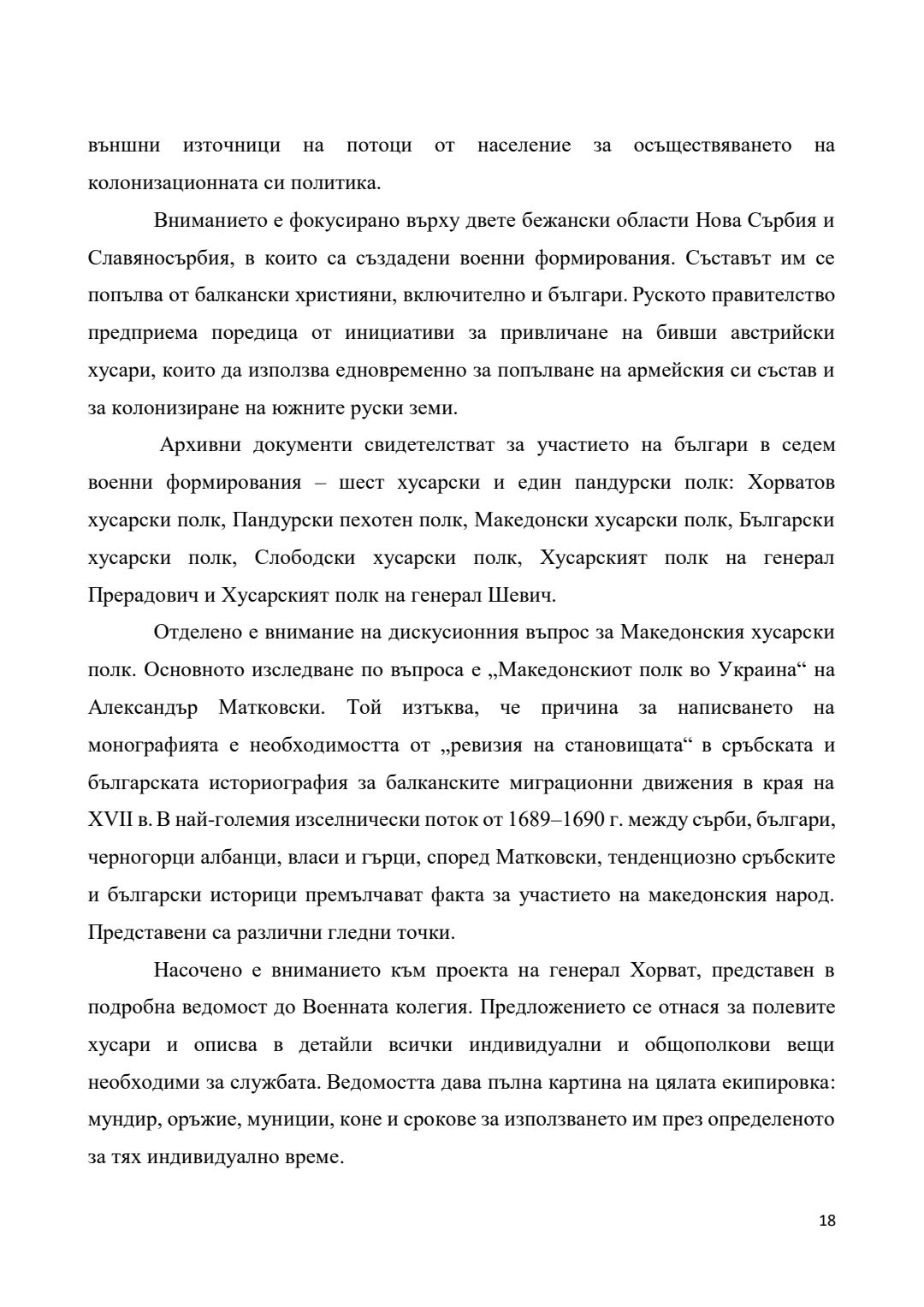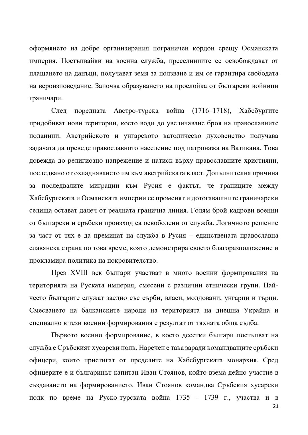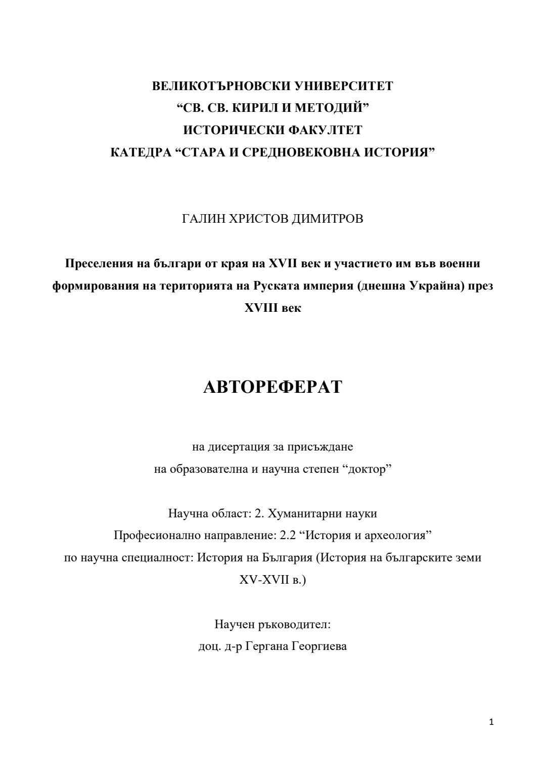 Преселения на българи от края на XVII век и участието им във военни формирования на територията на Руската империя (днешна Украйна) през XVIII век : Автореферат / Галин Христов Димитров ; Науч. ръководител Гергана Георгиева