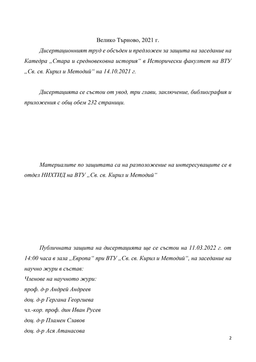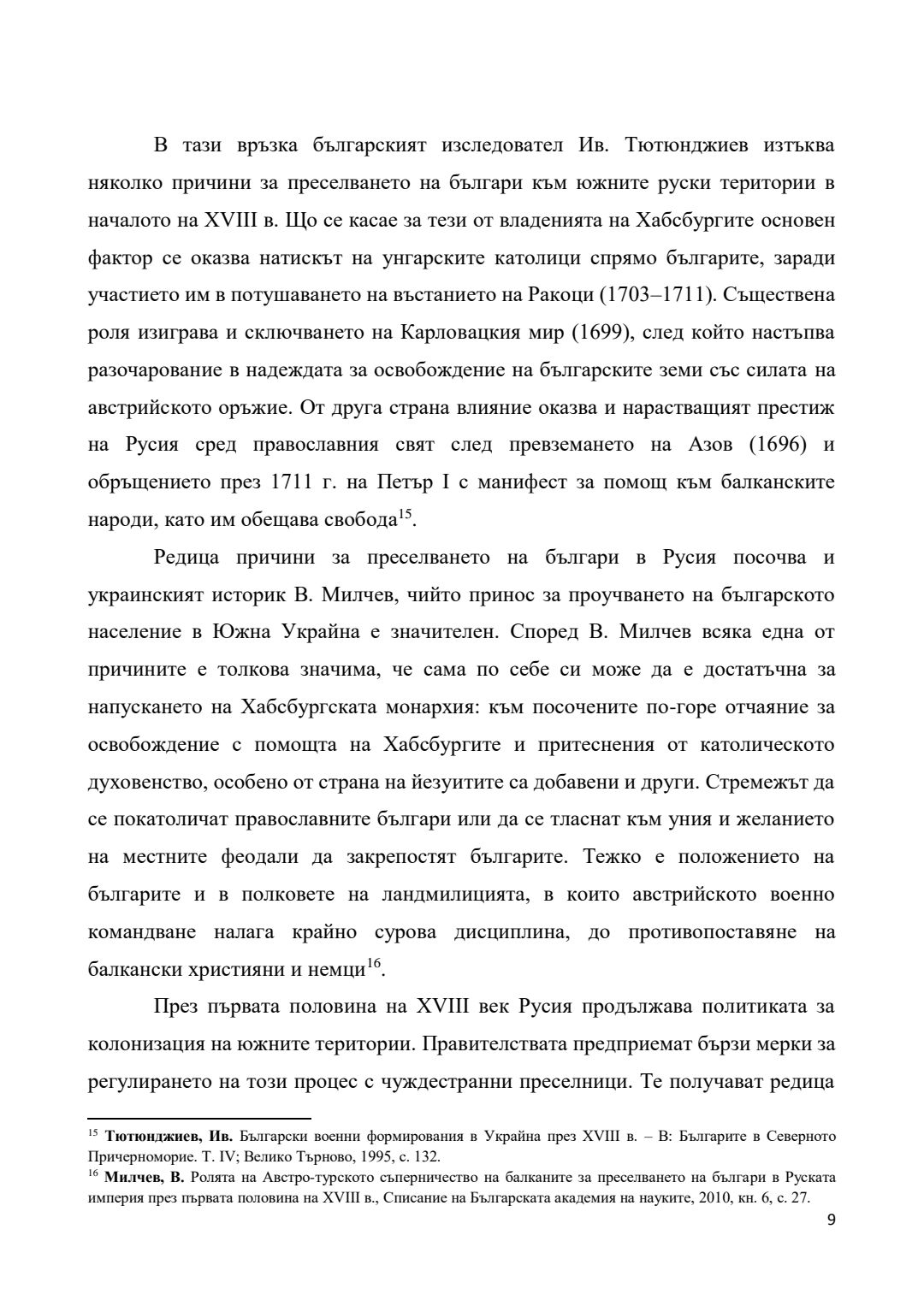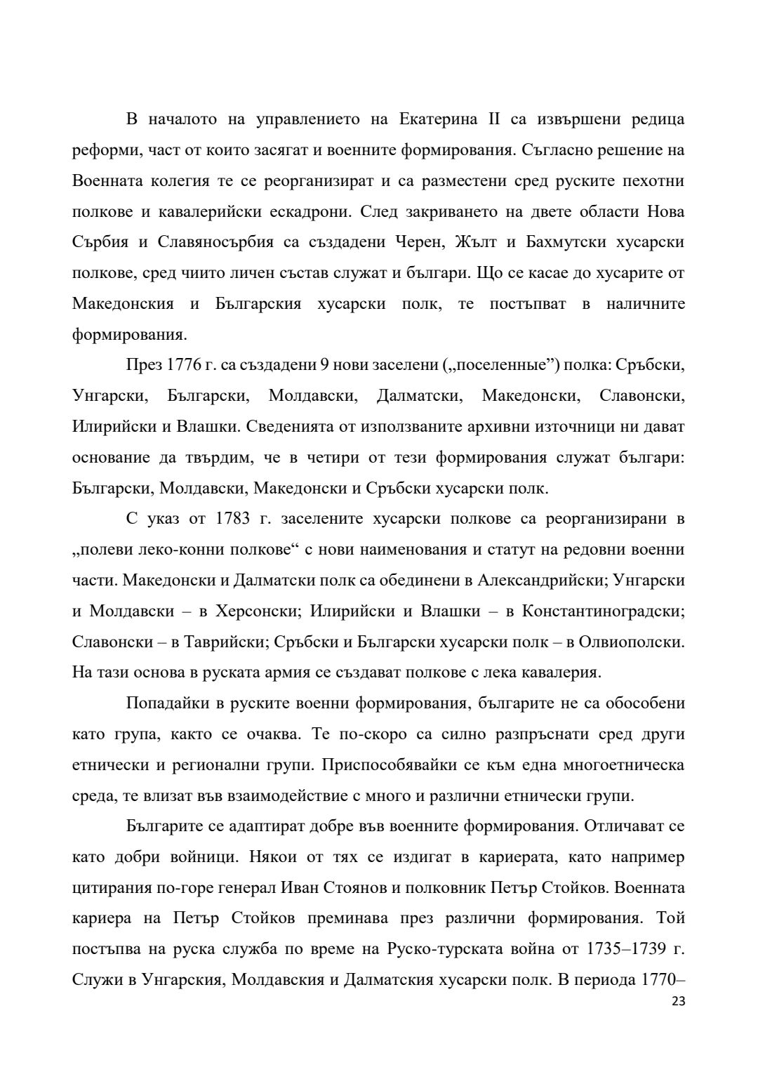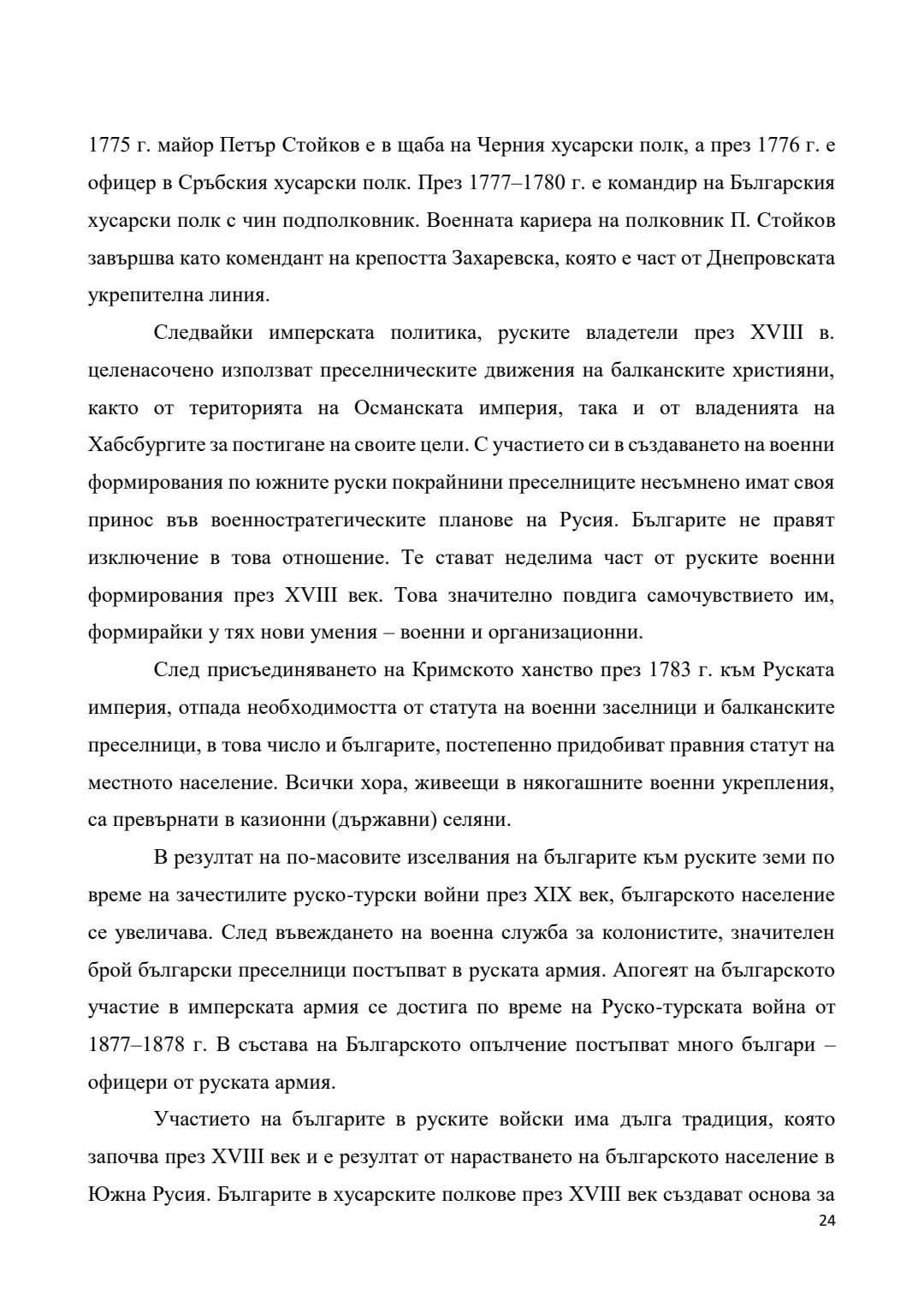 Преселения на българи от края на XVII век и участието им във военни формирования на територията на Руската империя (днешна Украйна) през XVIII век : Автореферат / Галин Христов Димитров ; Науч. ръководител Гергана Георгиева